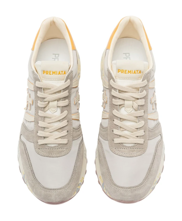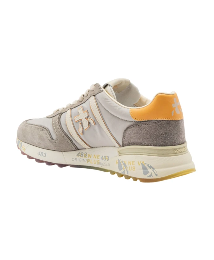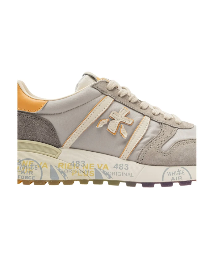 Мужские спортивные кожаные кроссовки Premiata серого цвета с резиновой подошвой 4,5 см.