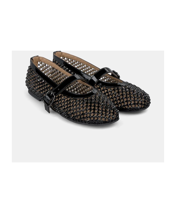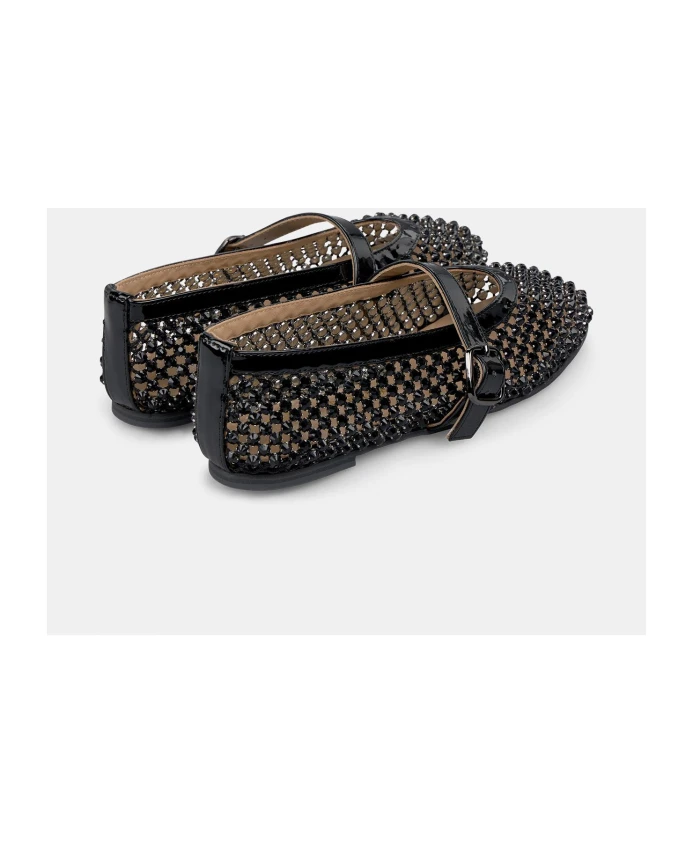 Балетки из сетчатой ткани со стразами Alma En Pena, черный