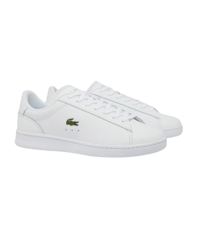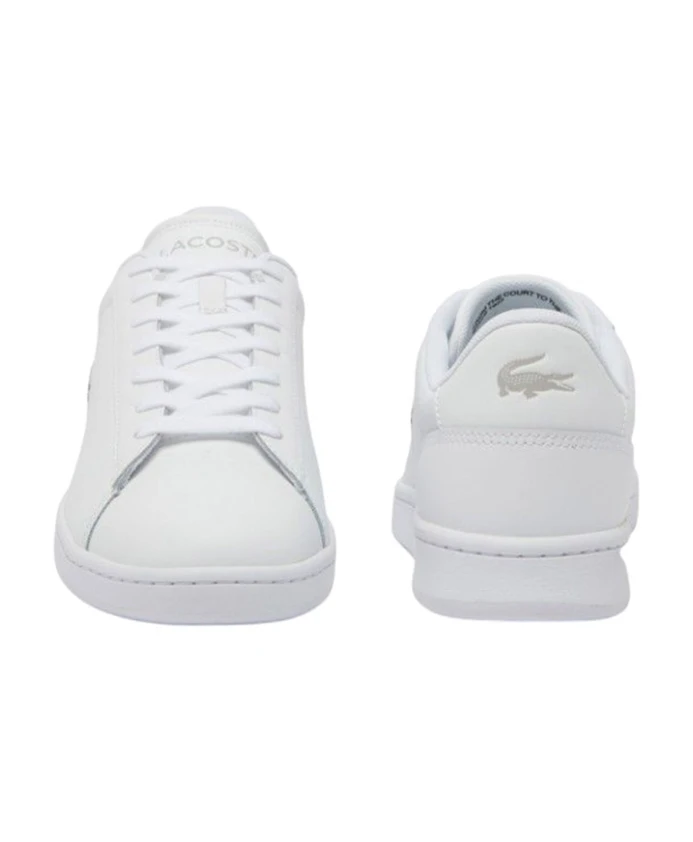 Мужские спортивные кроссовки Lacoste из белой кожи с резиновой подошвой толщиной 2 см.