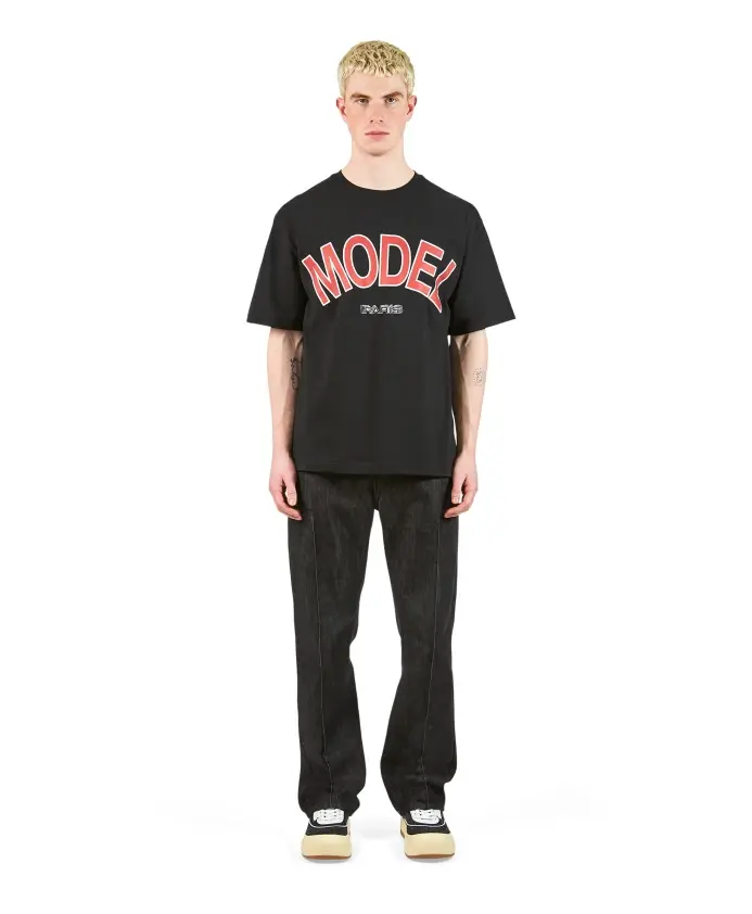 Футболка из чистого хлопкового трикотажа с принтом в виде водяных пятен на груди.