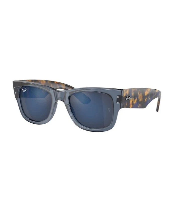 Солнцезащитные очки Ray-Ban в синей оправе для стильного образа под солнцем.