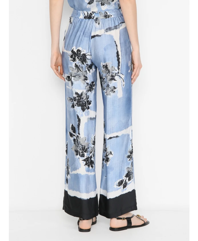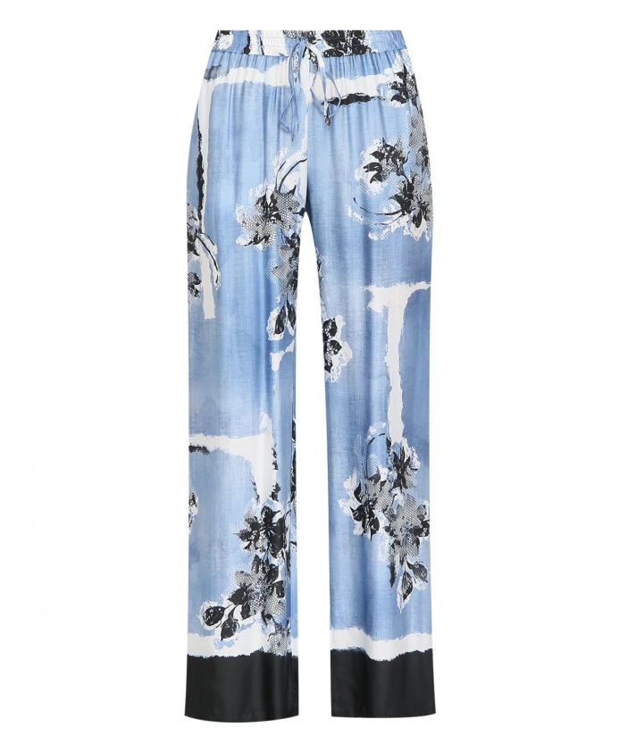 Синие шелковые брюки с принтом Ermanno Scervino, мультиколор