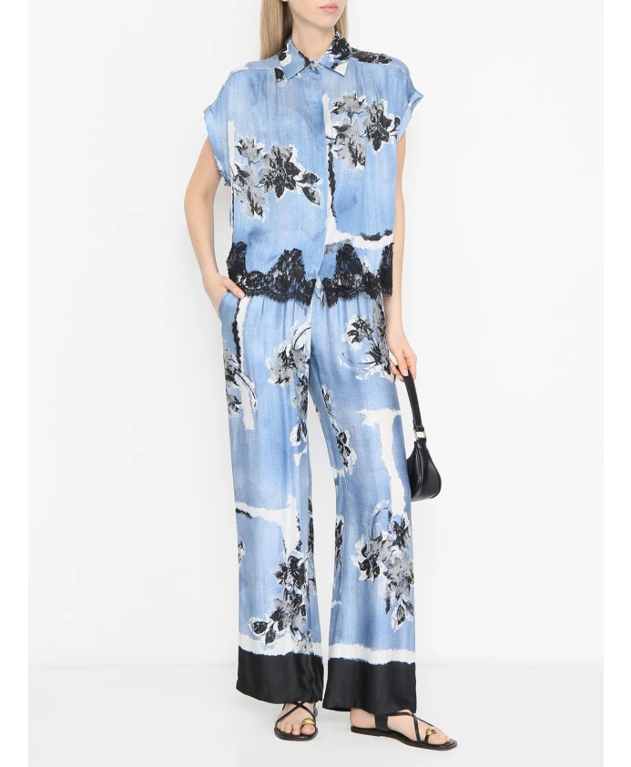 Синие шелковые брюки с принтом Ermanno Scervino, мультиколор 35 835₽