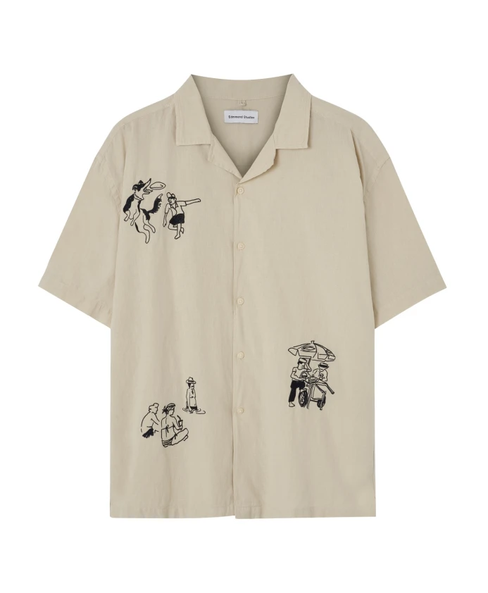 Бежевая мужская рубашка с принтами от EDMMOND STUDIOS.