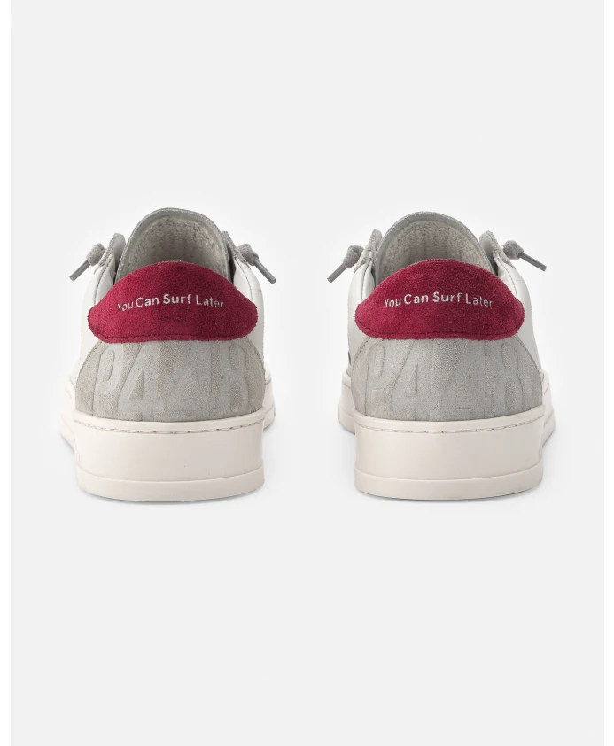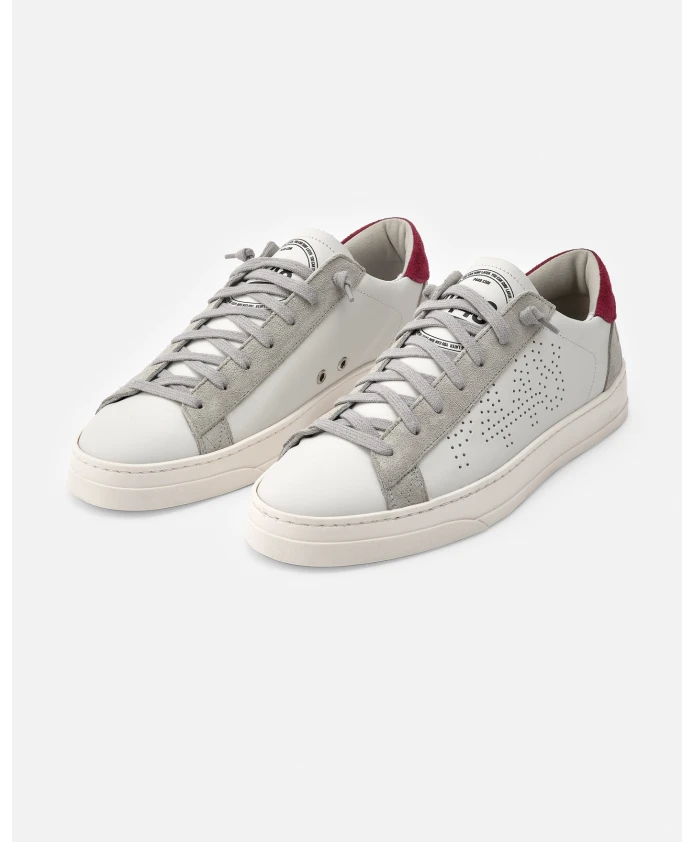 Белые кроссовки P448 с бордовыми деталями для мужчин.