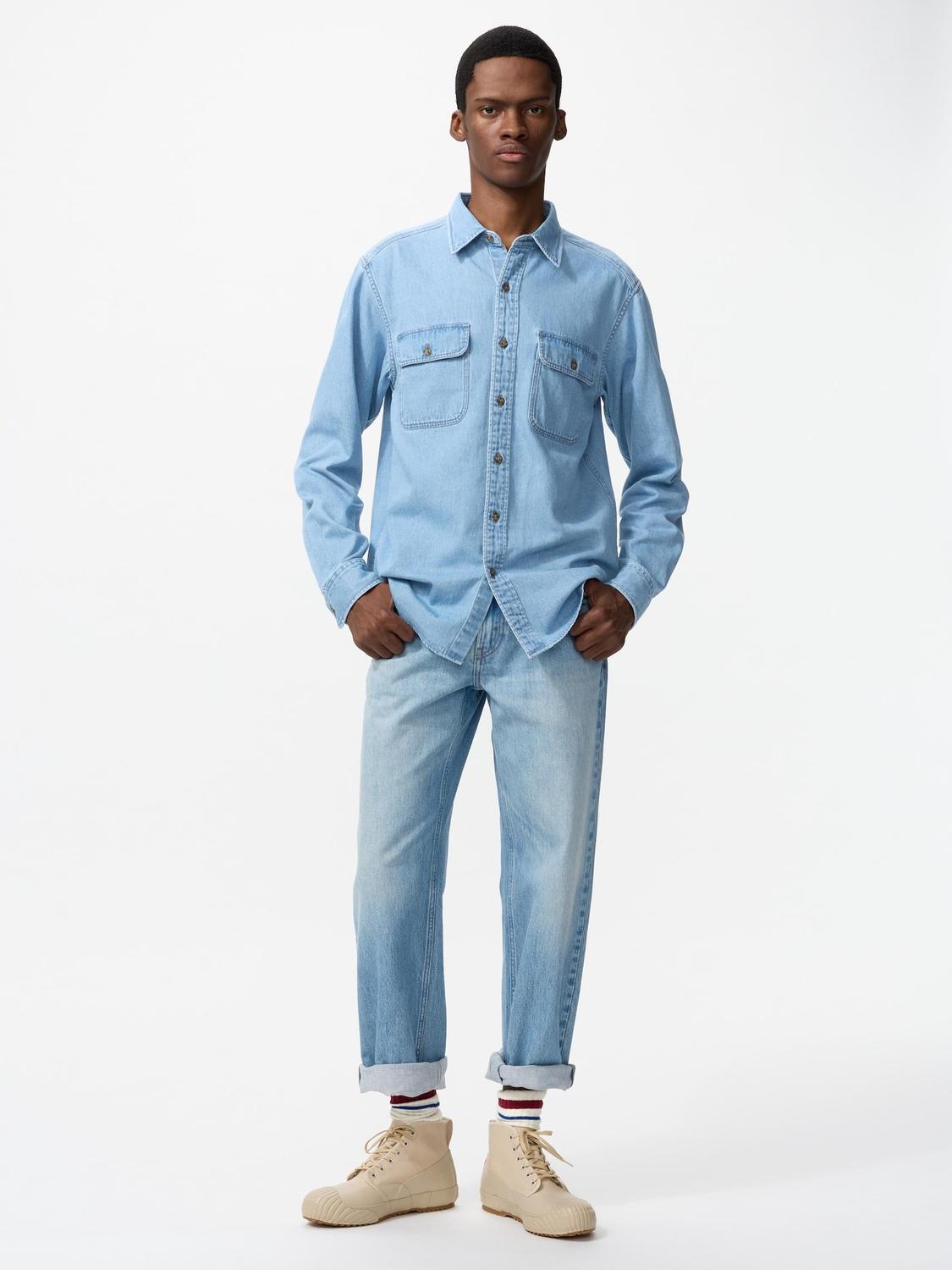 Джинсовая рубашка Uniqlo из 100% хлопка.