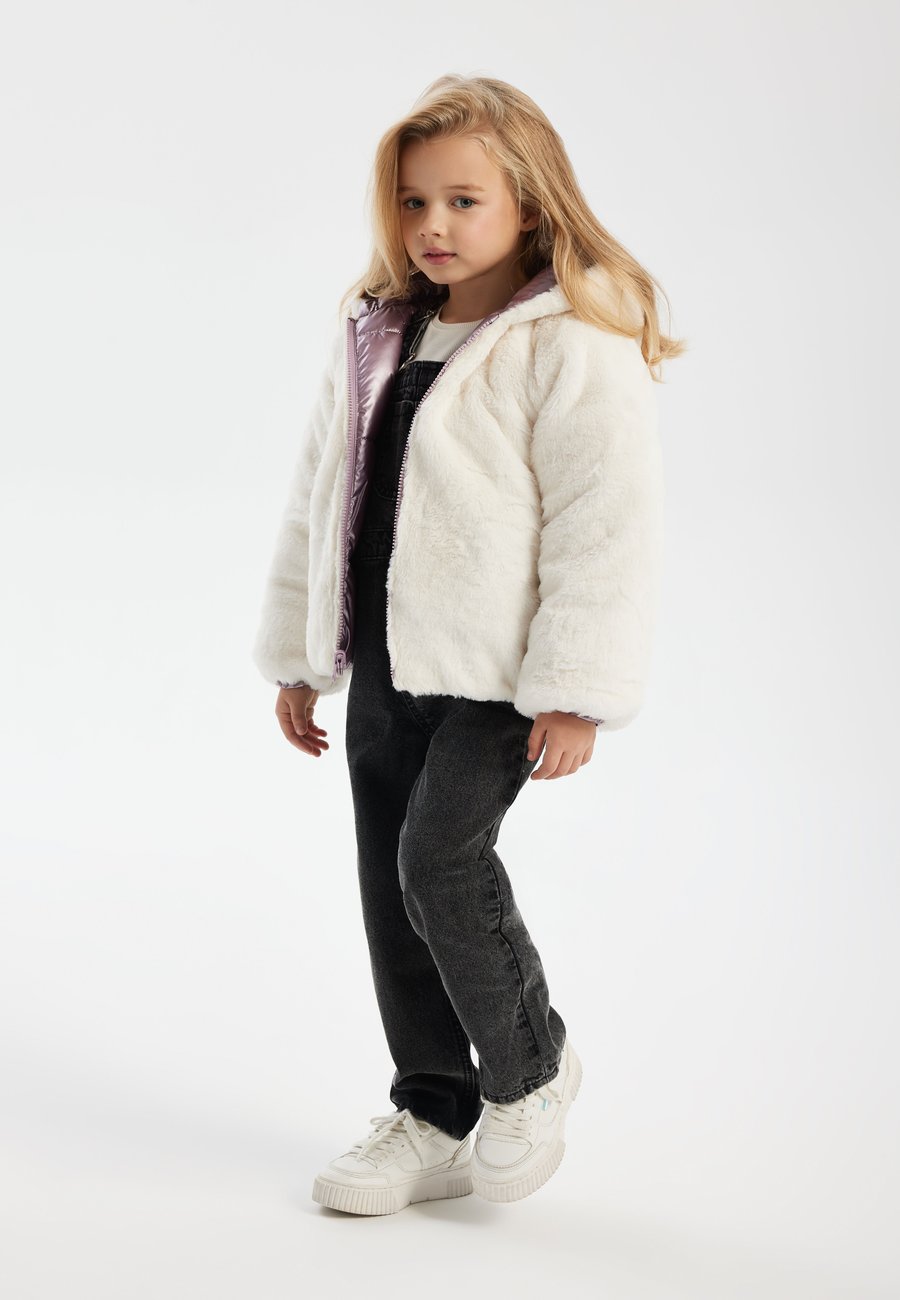 Эта куртка с металлизированной внешней отделкой с одной стороны и мягким плюшевым мехом с другой предлагает два стильных образа в одном. Удобная передняя молния обеспечивает легкое одевание и надежную посадку, а также тепло и комфорт в течение всего дня. Эта двусторонняя куртка идеально подходит для сочетания с различными нарядами и станет незаменимым дополнением к гардеробу вашего ребенка. Дизайн: Принцессы и сказкиМатериал и уход