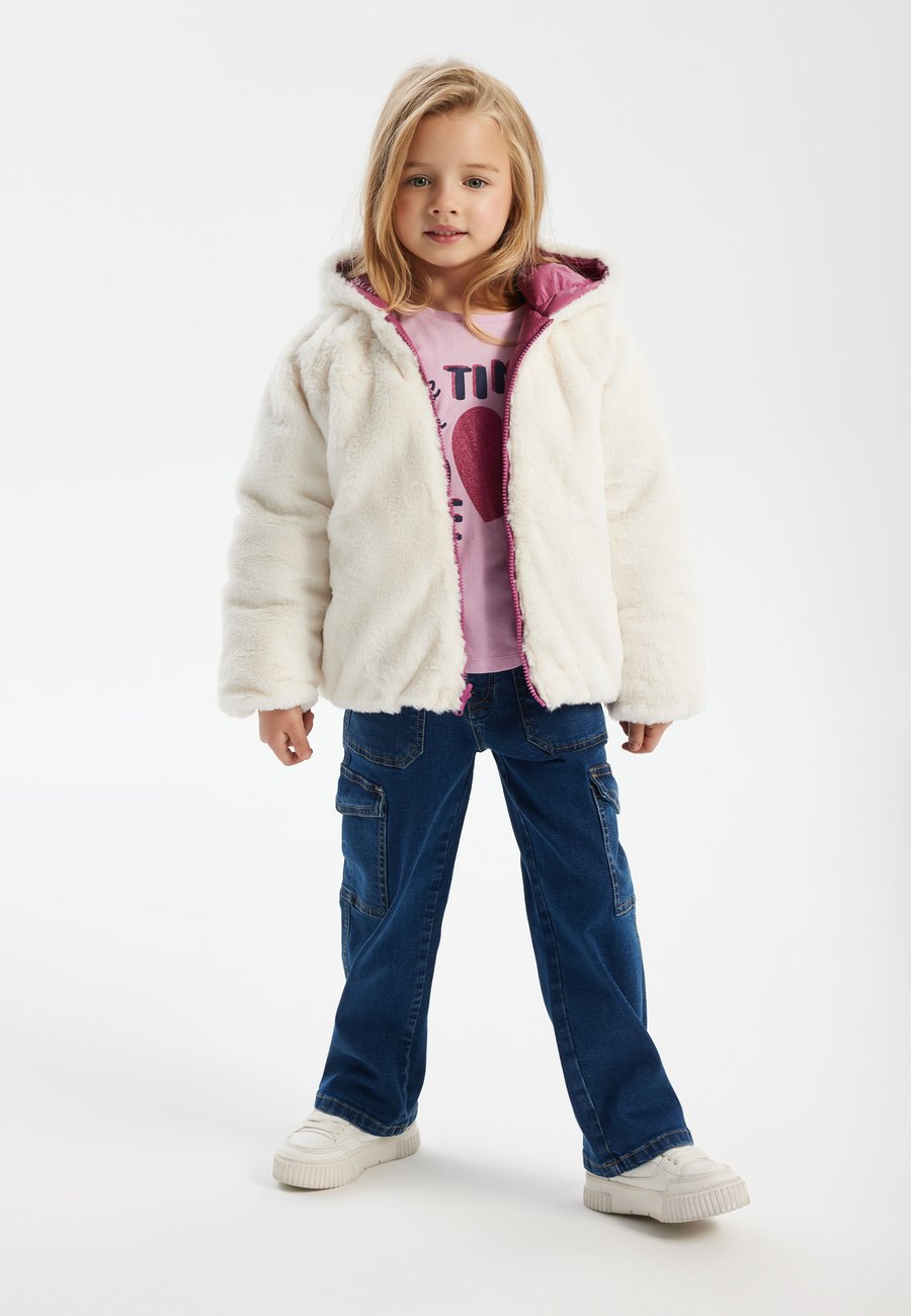 Эта куртка с металлизированной внешней отделкой с одной стороны и мягким плюшевым мехом с другой предлагает два стильных образа в одном. Удобная передняя молния обеспечивает легкое одевание и надежную посадку, а также тепло и комфорт в течение всего дня. Эта двусторонняя куртка идеально подходит для сочетания с различными нарядами и станет незаменимым дополнением к гардеробу вашего ребенка. Дизайн: Принцессы и сказкиМатериал и уход