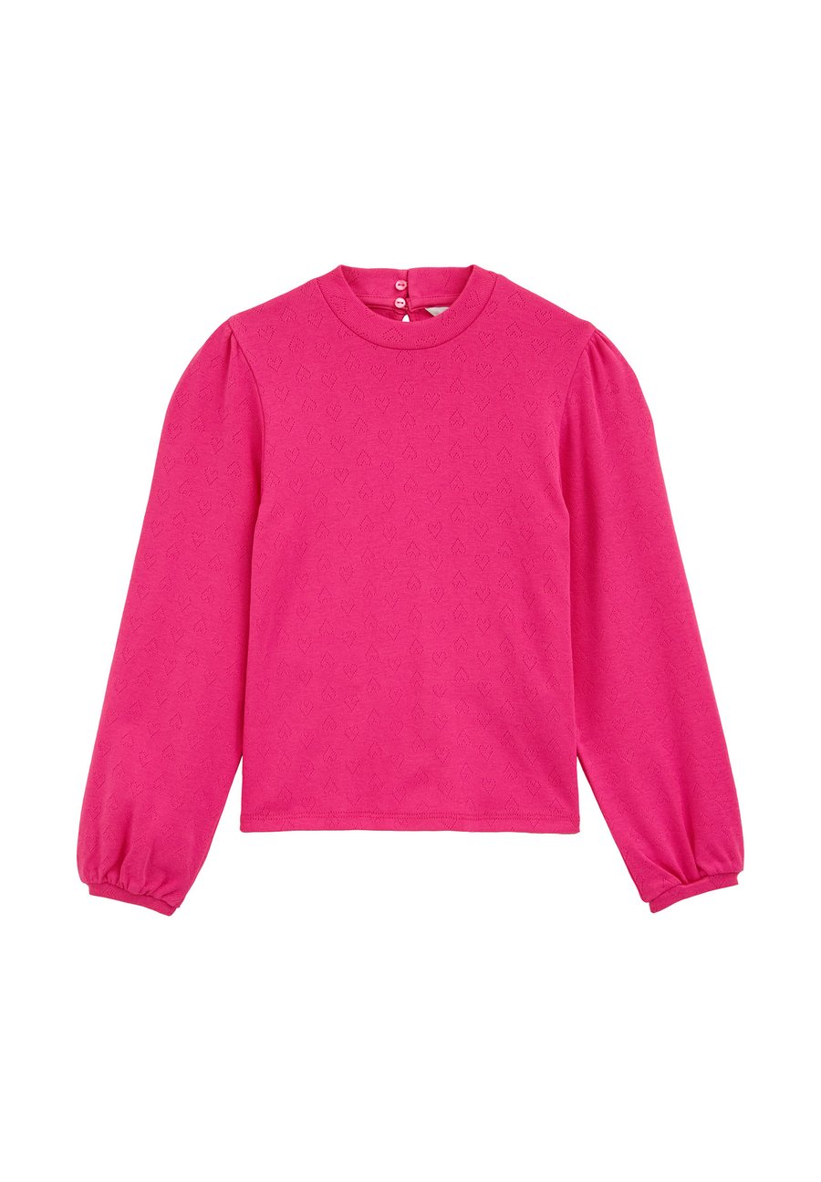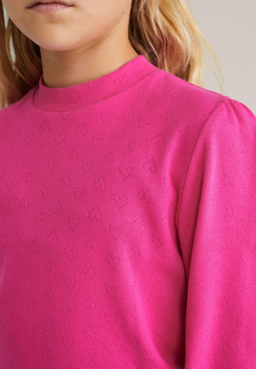 Любовь с первого взгляда. Эта футболка имеет стандартный крой, круглый вырез горловины, длинные рукава и узор из перфорированных сердечек по всей поверхности. Вырез горловины: круглыйМатериал и уход