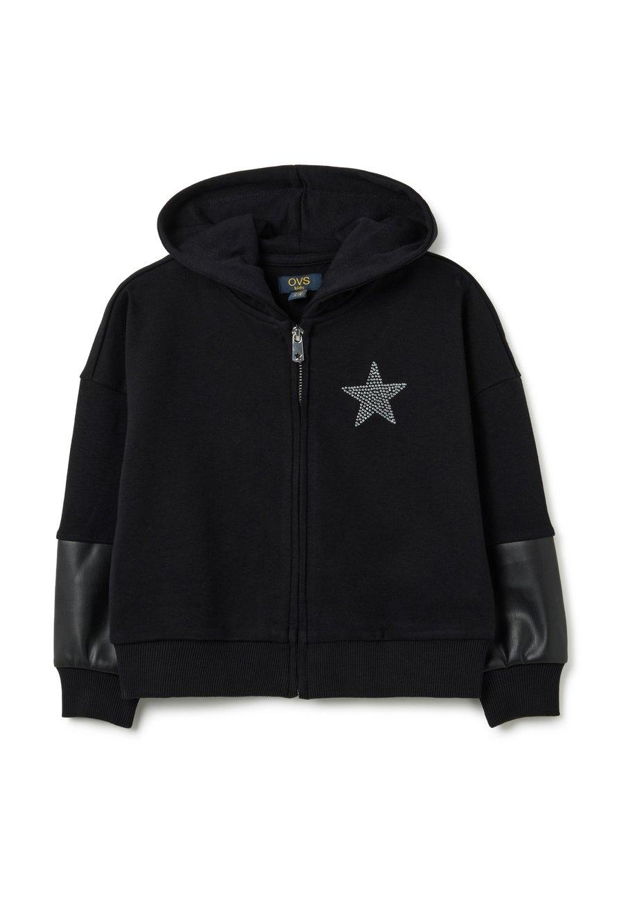 Черная толстовка из смесовой хлопковой ткани для девочек, идеально подходящая для прохладных осенне-зимних дней. Благодаря практичной застежке-молнии и круглому вырезу, толстовка обеспечивает комфорт и стиль. Длинные рукава и украшение в виде звезды на груди добавляют изделию оригинальности. Идеально подходит для девочек от трех до десяти лет. Вырез горловины: круглыйМатериал и уход