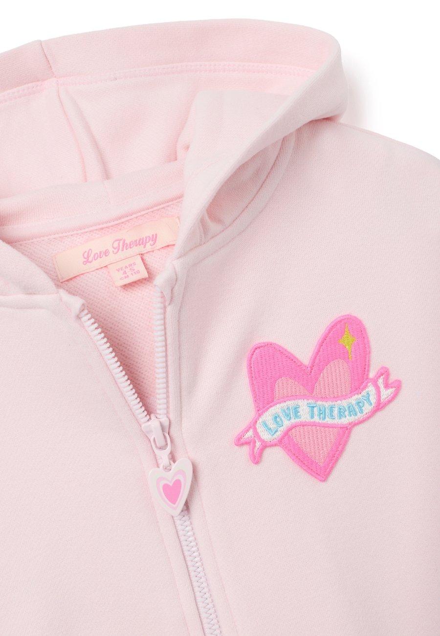 Розовая толстовка из смесовой хлопковой ткани из линии OVS KIDS для девочек от 3 до 10 лет обеспечит комфорт и тепло в холодное время года. Эта толстовка с капюшоном и застежкой-молнией по всей длине украшена яркими деталями, такими как вышитое сердечко на рукаве и надпись Love Therapy на спине, что добавляет жизнерадостности вашему гардеробу. Вырез: ХенлиМатериал и уход
