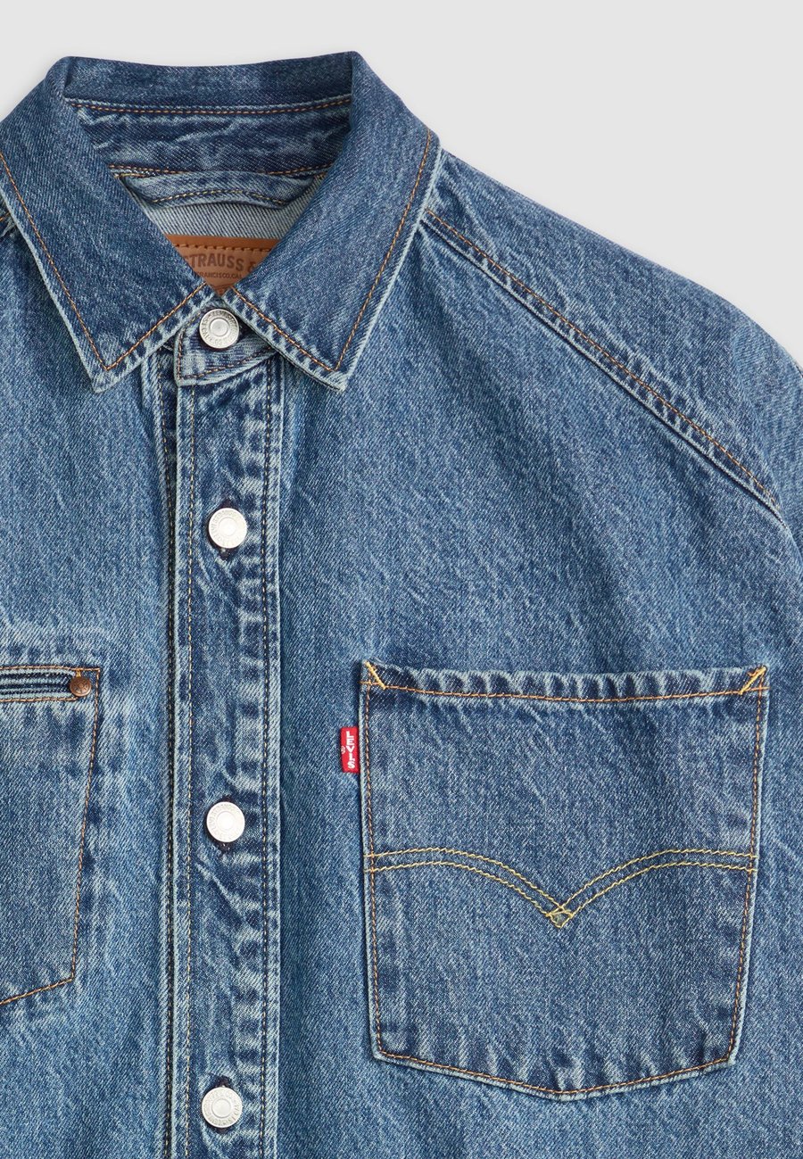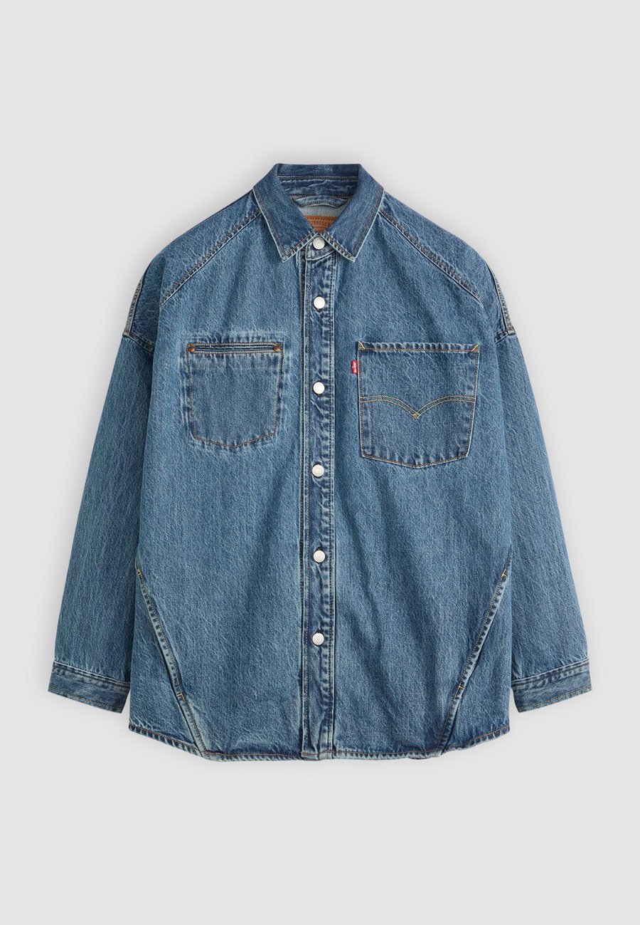 Накладные карманы, эффект стирки, воротник: отложной, застежка: пуговица, карманы: нагрудный карман, внутренние карманы, узор: однотонныйВнешний материал: 100% хлопок, ткань: деним, размер и посадкаРост модели: 185 см, размер M, посадка: свободная, прямой, длина: длинная, длина рукава: длинная, общая длина: 72 см (размер M), таблица размеров.Доставка товаров осуществляется курьером или на пункт выдачи заказов.