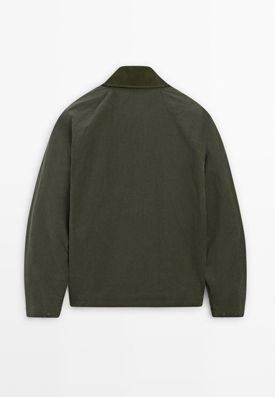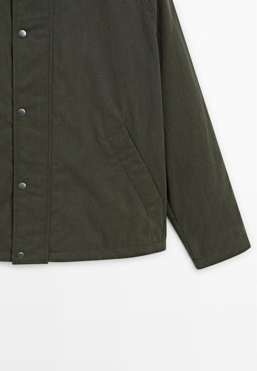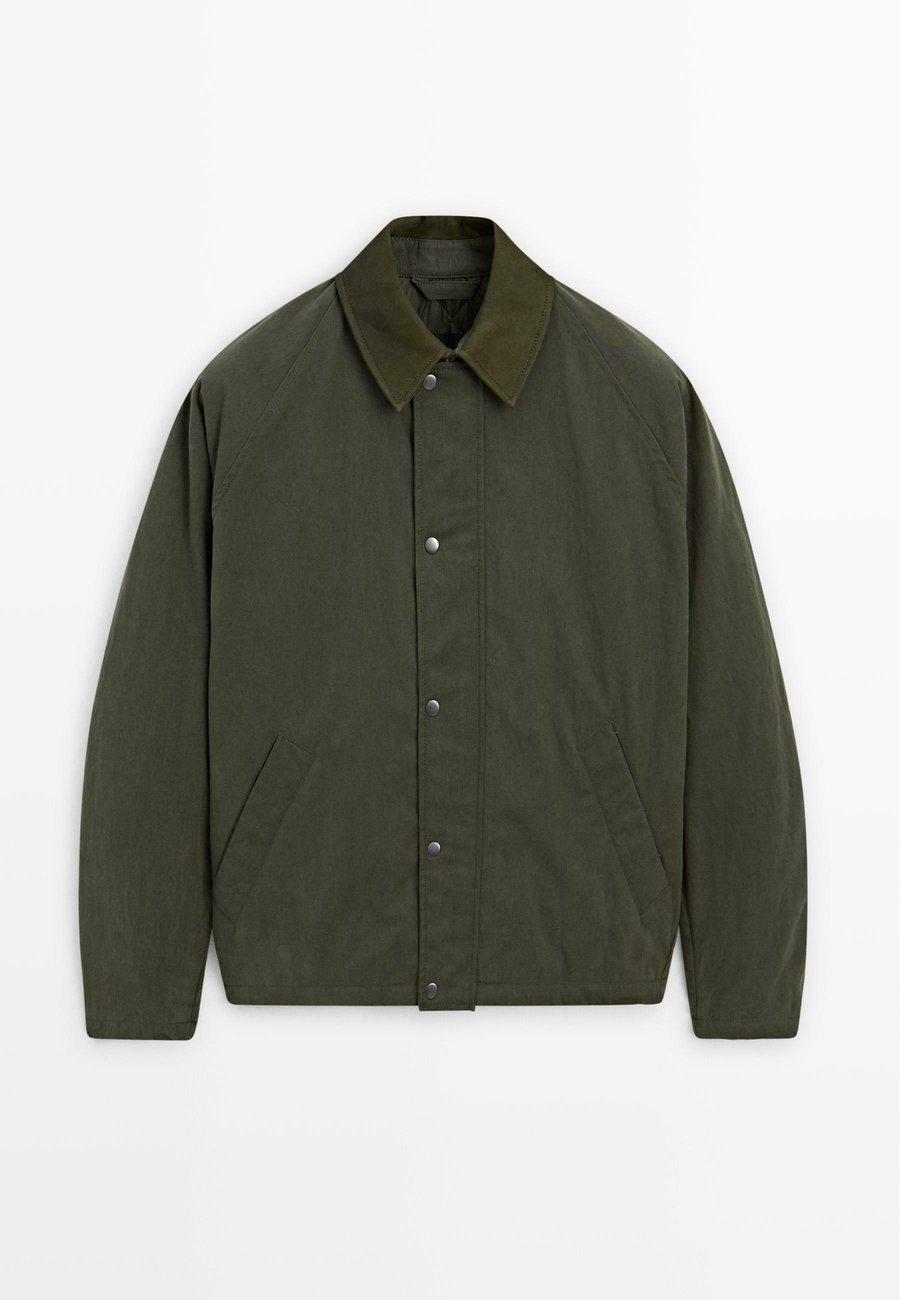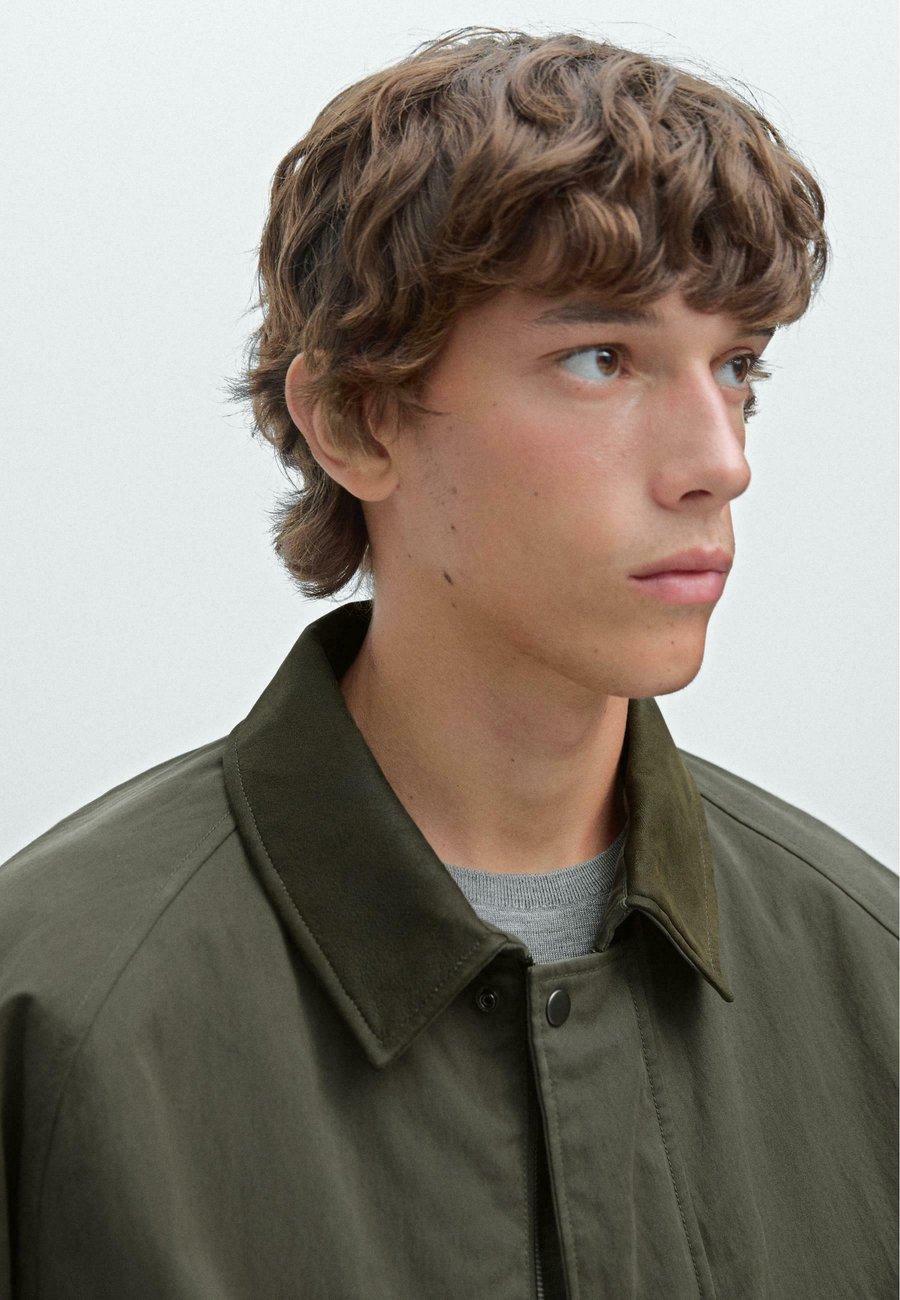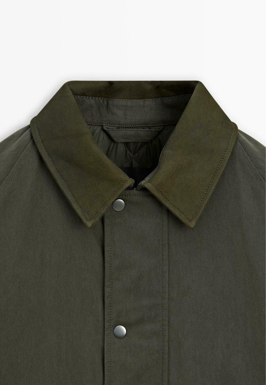 Двусторонняя застежка-молния, скрытая планкой с кнопками. Боковые карманы с застежкой на кнопки. Рукава реглан. Куртка из смесовой хлопковой ткани. Внутренний карман на кнопке. Манжеты с застежкой на кнопки. Воротник из овечьей кожи. Воротник: Отложной воротникМатериал и уход