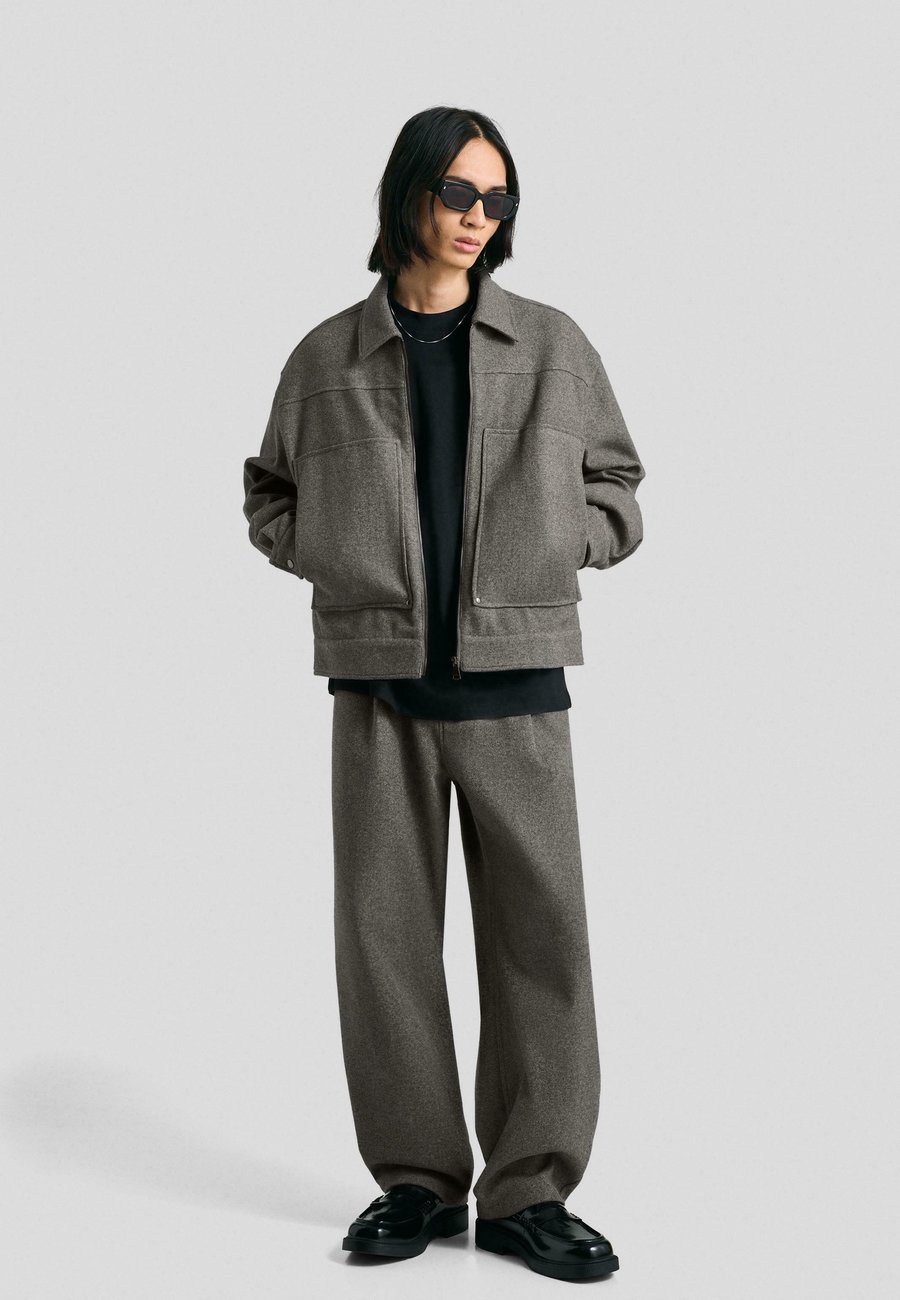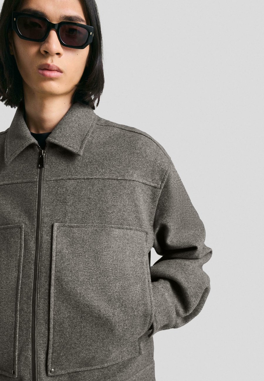Куртка Bershka BOXY FIT WITH ZIP , Mottled Dark Grey