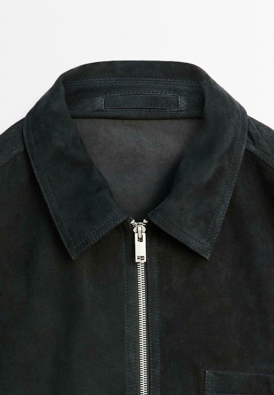 Боковые карманы с застежкой на кнопки. Рубашечный воротник. Длинные рукава с манжетами на кнопках. Куртка из козьей кожи с замшевой отделкой. Застежка на двустороннюю молнию. Прорезной карман на груди. Воротник: Отложной воротник.Материал и уход