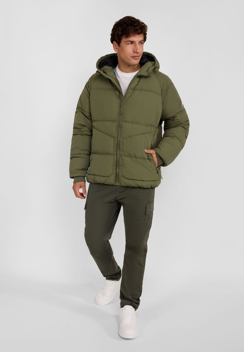 Мужская стеганая куртка с капюшоном и теплым полиэстеровым утеплителем для превосходной теплоизоляции в холодную погоду. Изготовлена из прочной 100% нейлоновой ткани снаружи и полиэстеровой подкладки для легкости, комфорта и сохранения тепла. Имеет застежку-молнию спереди и два боковых кармана на молнии для надежного хранения вещей. Капюшон с подкладкой обеспечивает дополнительную защиту от ветра и холода. Классический крой с длинными рукавами обеспечивает универсальность стиля как для активного отдыха на природе, так и для повседневной зимней носки. Воротник: КапюшонМатериал и уход