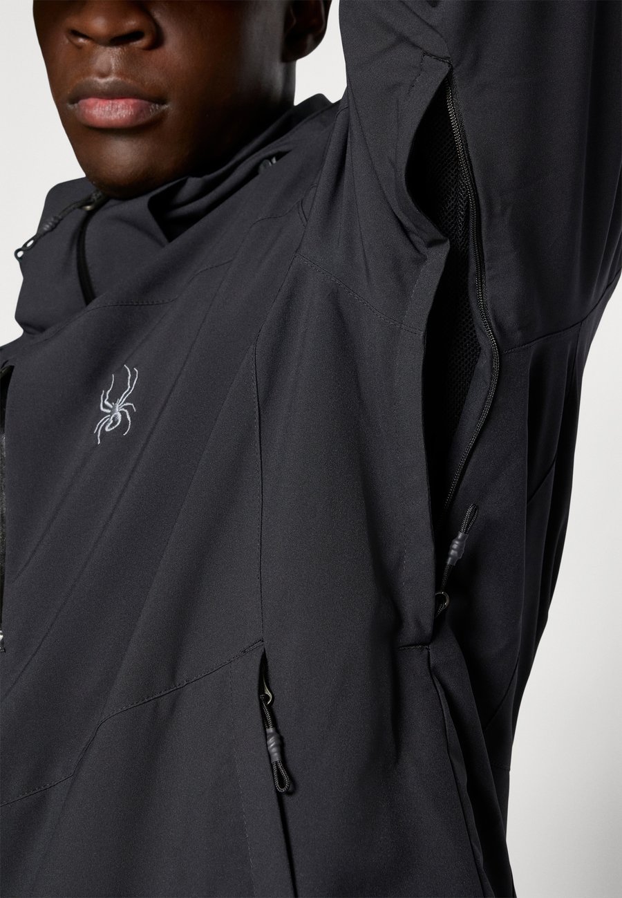 Технология: EXO Shield 20k (Spyder) - дышащая, водо- и ветрозащитная мембрана, водостойкость: 20 000 мм, воздухопроницаемость: 20 000 г/м²/24 ч, обеспечивает ощущение сухости при ношении. Технология: EXO Thermo (Spyder) сохраняет тепло тела, встроенная защита от снега, не содержит ПФАС. Вид спорта: Горнолыжный спорт.Материал и уход