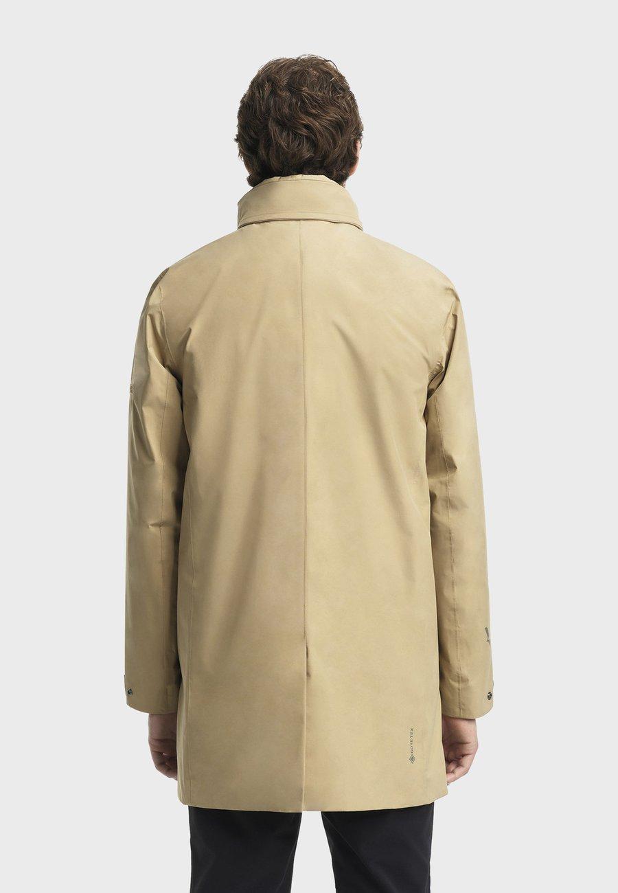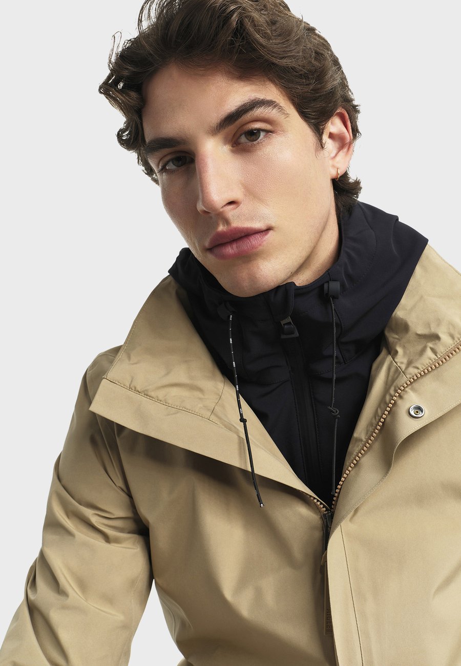 Парка из двухслойной ткани Gore-Tex с выдвижным капюшоном - икона городской мобильности от Aigle. Изготовленная из водонепроницаемой и дышащей двухслойной ткани Gore-Tex, она сочетает в себе элегантность и функциональность благодаря водоотталкивающей молнии, приталенному крою и выдвижному капюшону со светоотражающими полосами. Она имеет воротник-стойку, переднюю молнию с двумя бегунками и кнопками, два боковых кармана на молнии, внутренний карман на молнии и внутренний накладной карман. Регулируемые манжеты на кнопках, разрез сзади, вышивка логотипа Aigle и светоотражающий логотип BIRD внизу рукавов дополняют эту модель, а также водонепроницаемые швы и полную подкладку. Погода: ДождьМатериал и уход