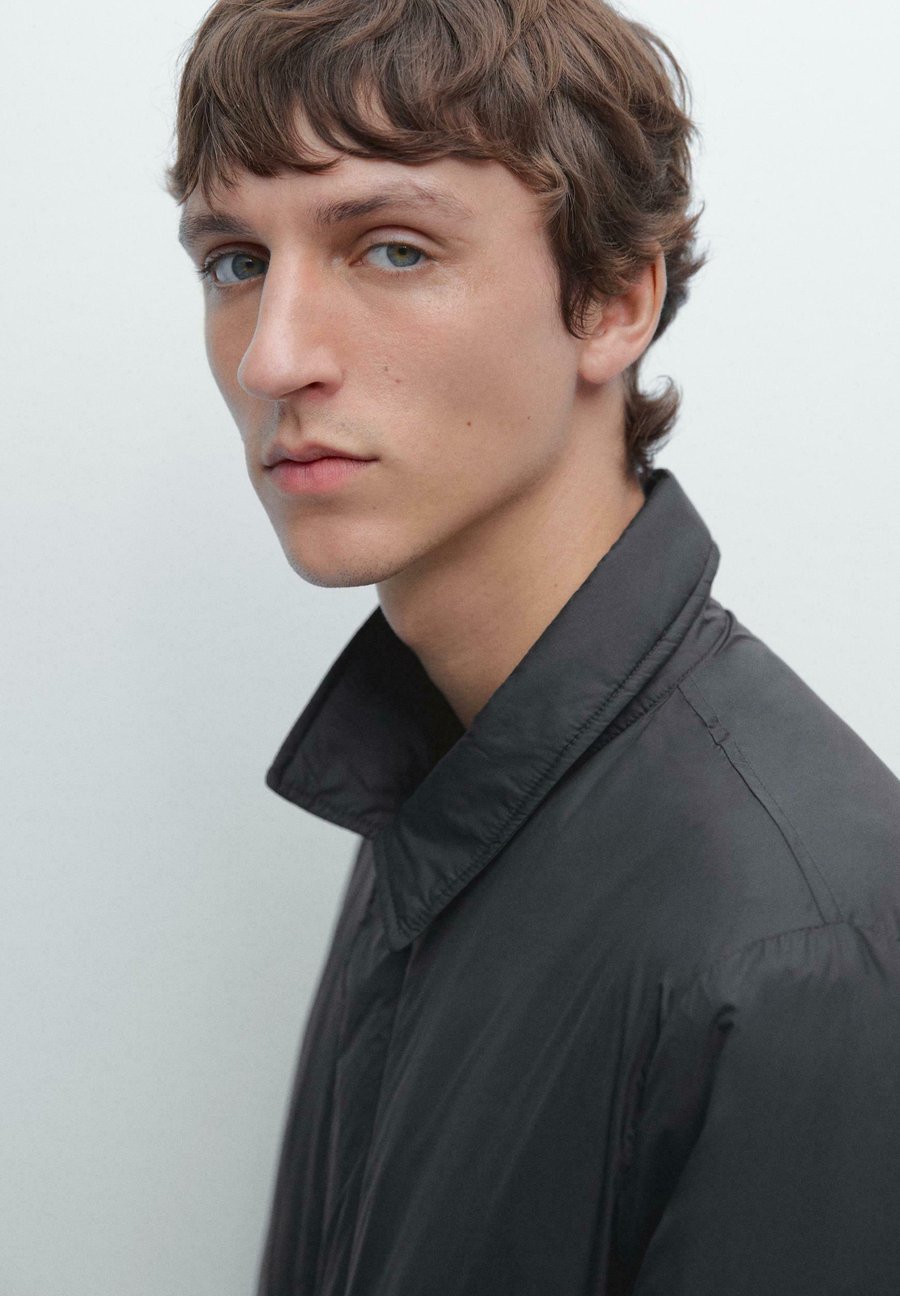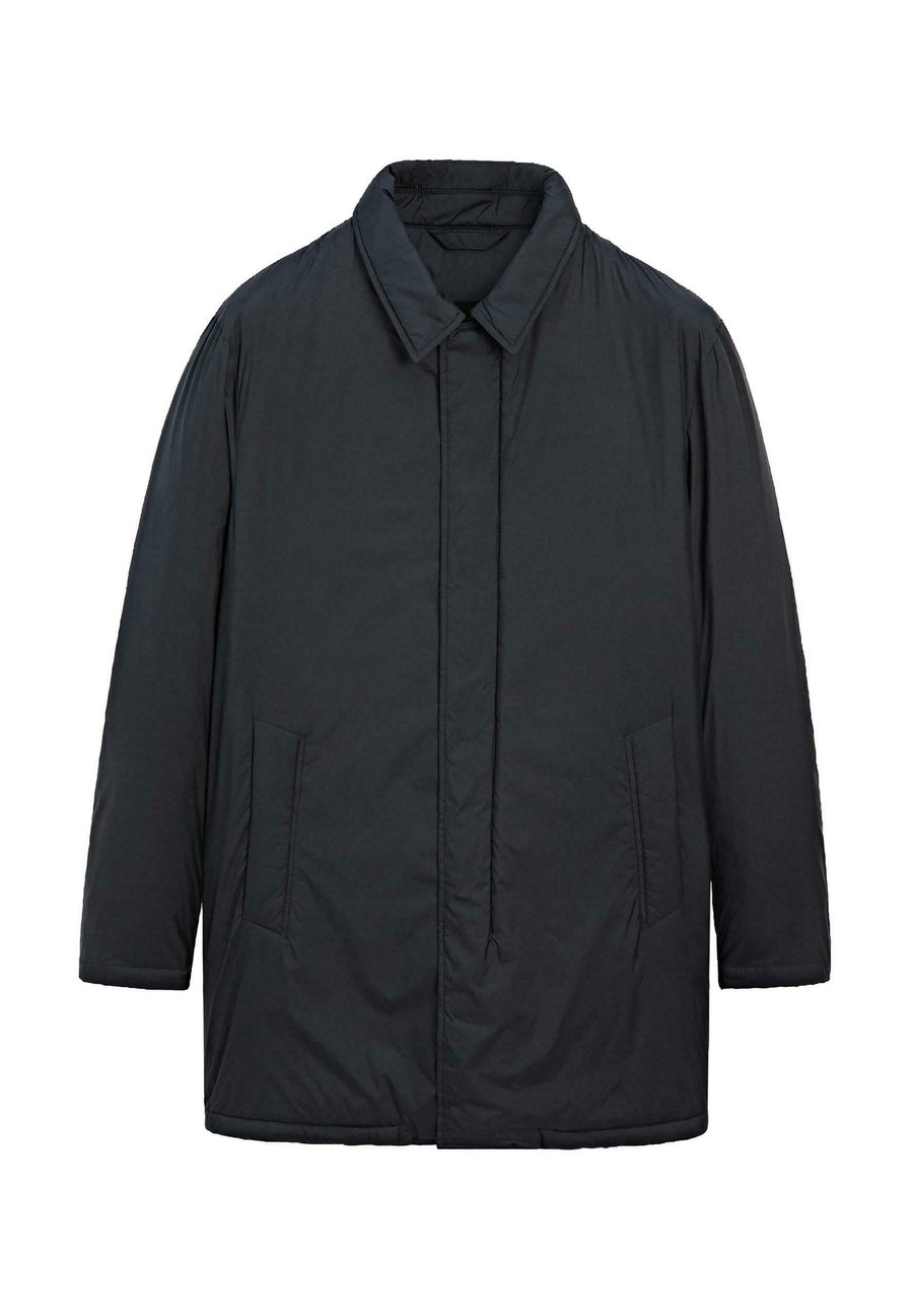 Водоотталкивающая ткань. Двусторонняя застежка-молния, скрытая планкой с кнопками. Боковые карманы на кнопках. Рубашечный воротник. Легкая парка с внутренней подкладкой из пера. Внутренний карман на молнии. Центральная застежка сзади на кнопках. Воротник: Отложной воротник.Материал и уход