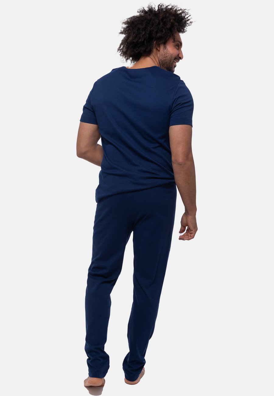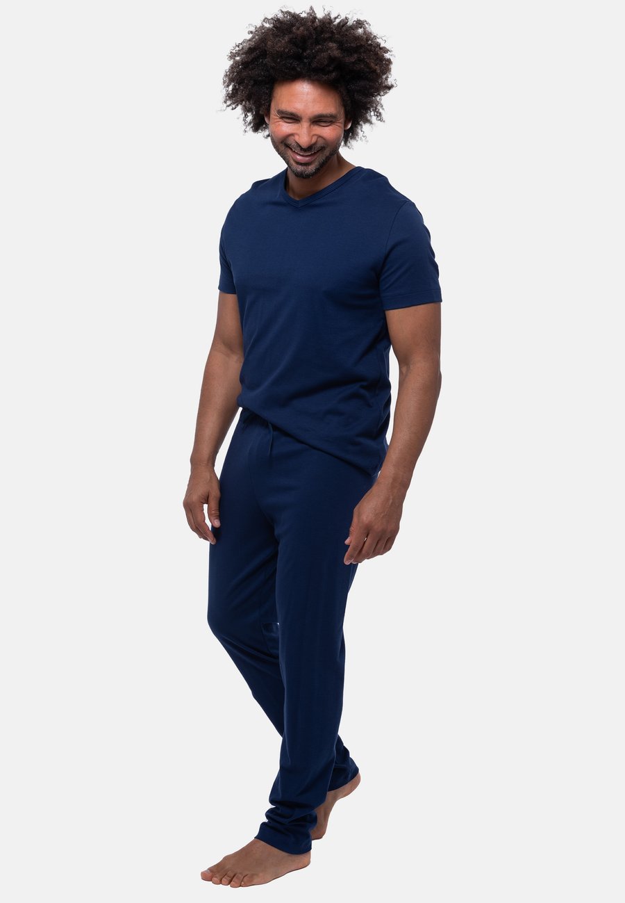 Мягкая и удобная пижама из дышащего трикотажа интерлок из 100% хлопка идеально подходит для спокойных вечеров и тихих моментов. Свободный крой и удобный пояс со шнурком обеспечивают естественное ощущение при ношении. Пижамная рубашка с V-образным вырезом впечатляет свободным кроем и приятной мягкостью, а также возможностью разнообразного сочетания. Высота посадки: стандартнаяМатериал и уход