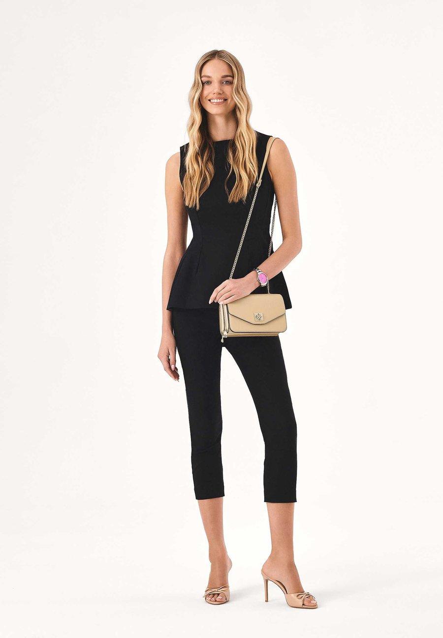 Бежевая сумка из высококачественной натуральной кожи - это сочетание элегантности и функциональности. Она имеет четыре отделения, расположенных в форме гармошки, что придает ей оригинальный характер и увеличивает вместимость. Два из них на молнии, идеально подходящие для безопасного хранения ценностей, а два открытых отделения обеспечивают быстрый доступ к самым необходимым вещам. Клапан сумки украшен поворотной застежкой в форме монограммы KAZAR, что добавляет роскоши и подчеркивает ее уникальность. Сумка висит на элегантной цепочке, которая позволяет удобно носить ее на плече или через плечо, добавляя шика вашему образу. Характеристики: Сумка имеет 2 отделения на молнии и 2 открытых отделения, которые дополнительно закрываются клапаном с поворотной застежкой. В переднем отделении 2 отделения. Плечевая цепочка не снимается и не регулируется, ее длина составляет 114 см. Отделения: Карман для мобильного телефонаМатериал и уход