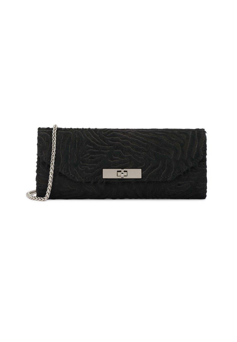 Элегантная, прочная сумочка-клатч из натуральной кожи с обработанной щетиной, создающая эффектный узор, вдохновленный мотивом зебры. Текстура кожи придает сумочке роскошный вид и привлекает внимание своим едва заметным блеском. Застежка серебристого цвета в современном стиле обеспечивает удобство использования и гармонично вписывается в общий дизайн. Модель оснащена съемной серебристой цепочкой, позволяющей носить сумочку на плече или в руке как классический клатч. Идеально подходит для элегантных вечеринок, торжеств и вечерних выходов. Характеристики: Сумка имеет 1 основное отделение, закрывающееся на поворотную застежку. Цепочка съемная, без регулировки длины. Отделения: Карман для мобильного телефона.Материал и уход