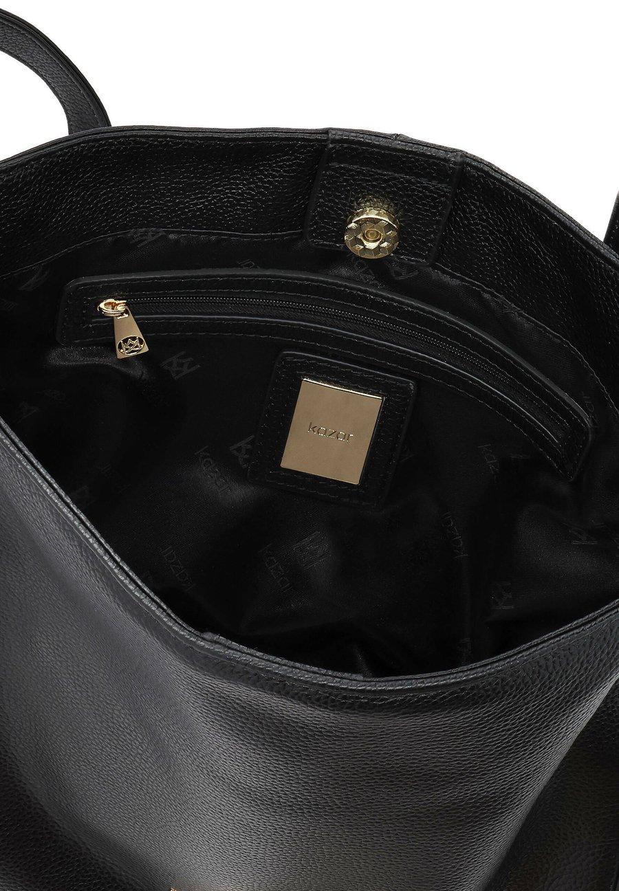 Черная сумка из высококачественной натуральной кожи с деликатной текстурой. Классический минималистичный крой сумки-шоппера сочетает в себе вневременной стиль и повседневную функциональность. Модель отличается едва заметным золотым логотипом KAZAR на передней части, который добавляет шика общему образу. Сумка имеет длинный регулируемый плечевой ремень, позволяющий удобно носить ее несколькими способами - как на плече, так и наискосок. Просторный внутренний отсек легко вместит все необходимые вещи, что делает эту сумку идеальным выбором для повседневного использования - для работы, учебы или покупок. Характеристики товара: Основное отделение сумки закрывается на магнитную застежку. Имеет 1 открытый карман и 1 карман на молнии. На дне сумки металлические ножки. Отделения: Просторное внутреннее отделение, карман для мобильного телефона.Материал и уход