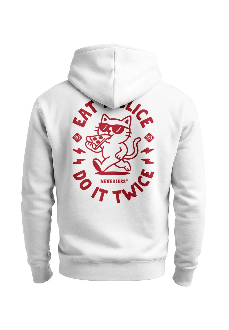 Толстовка Neverless BACKPRINT EAT TWICE PIZZA CAT , Weiß/White