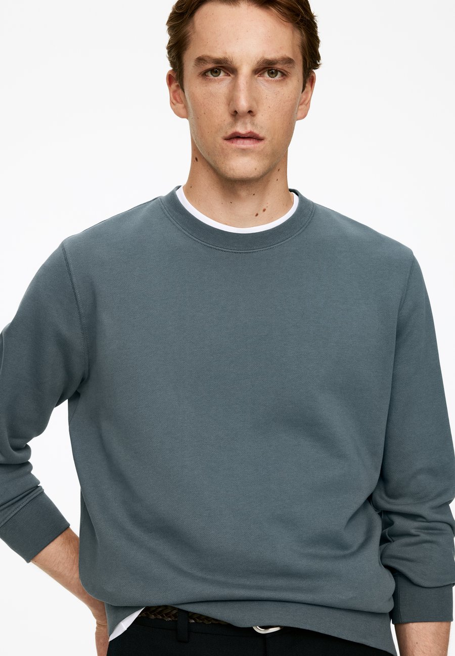 Свитшот изготовлен из французского махрового трикотажа средней плотности 340 г/м². Круглый вырез с ребристой отделкой. Стандартный крой. Вырез горловины: КруглыйМатериал и уход