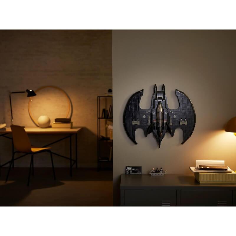 Собранную модель можно дополнить тремя минифигурками персонажей фильма «БЭТМЕН» и установить на подставку или повесить на стену с помощью специального крепления, что позволит сэкономить место и сделать её более эффектной.