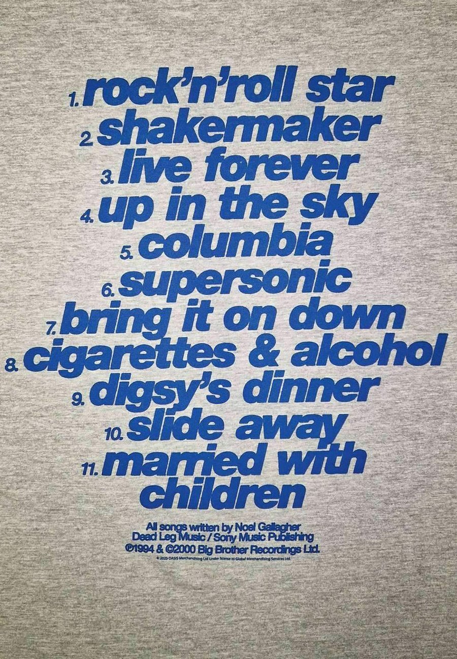 Толстовка rockshirts OASIS DEFINITELY MAYBE TRACKLISTING, Grey