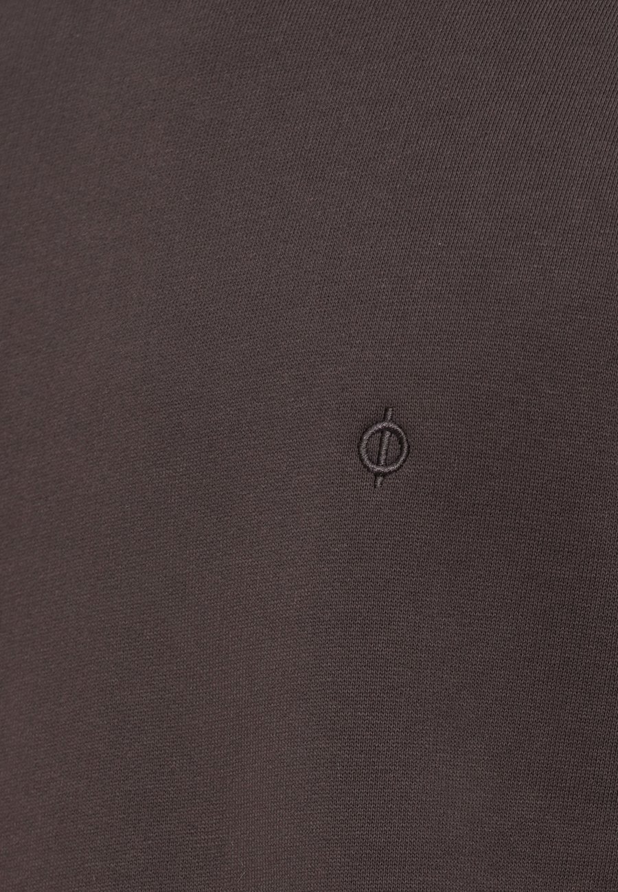 Небольшая этикетка-флажок на уровне груди. Вырез горловины: круглый.Материал и уход