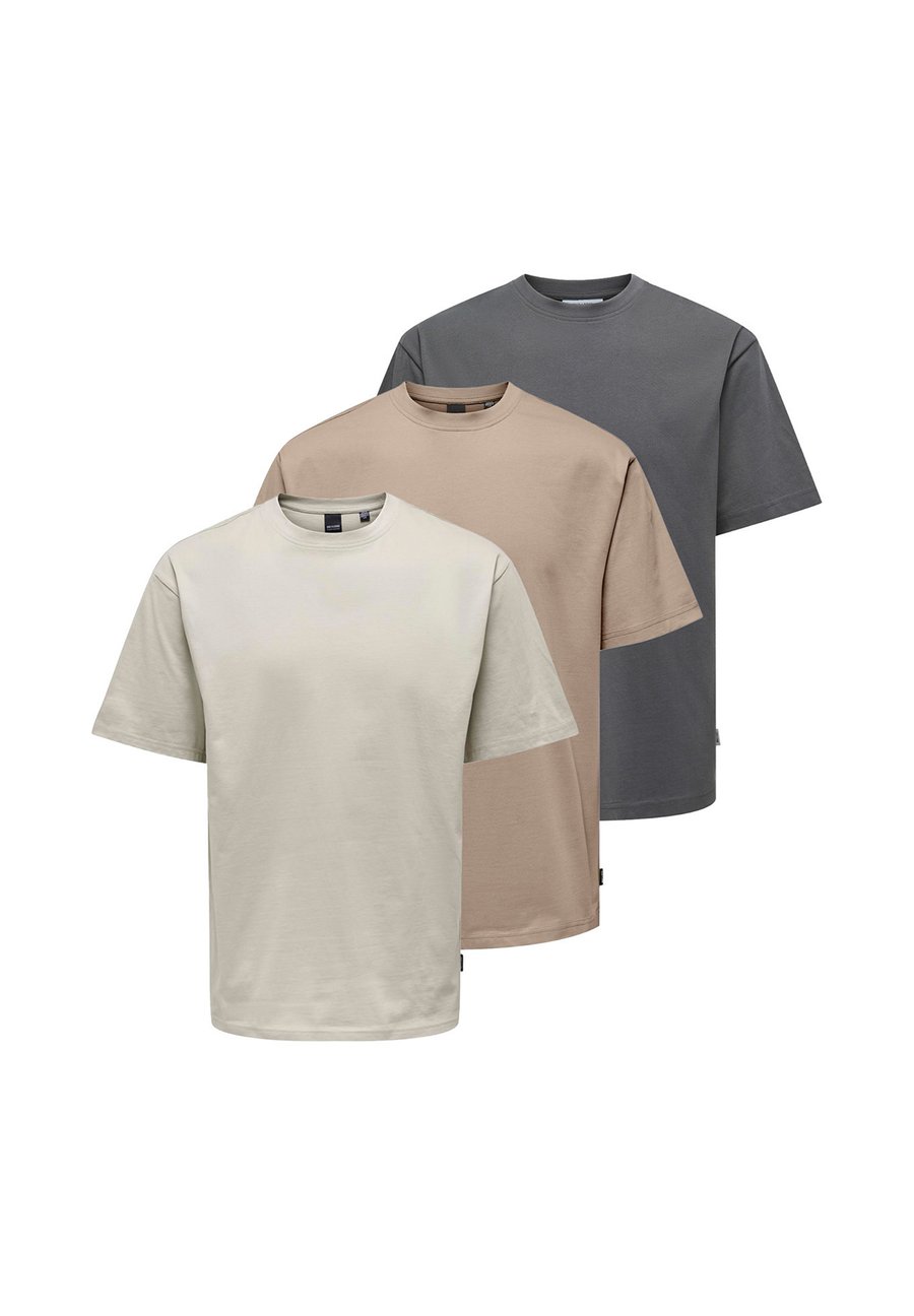 Футболка Only & Sons 3ER PACK FRED, Beige/Dunkelgrau/Taupe/Light Brown