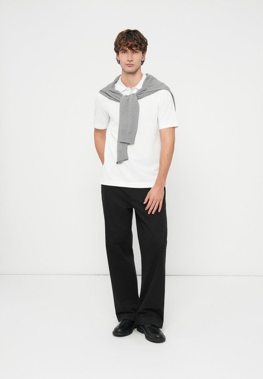Небольшая этикетка-флажок на уровне груди. Воротник: рубашка поло.Материал и уход