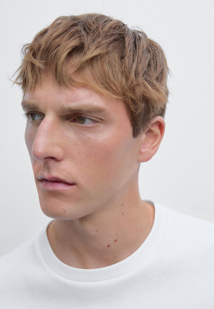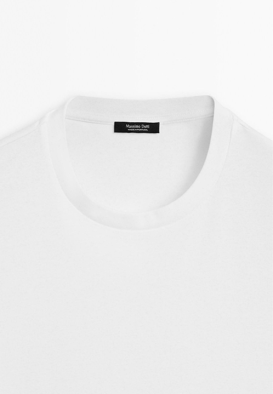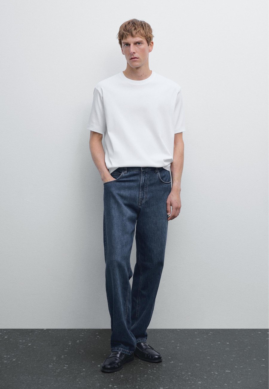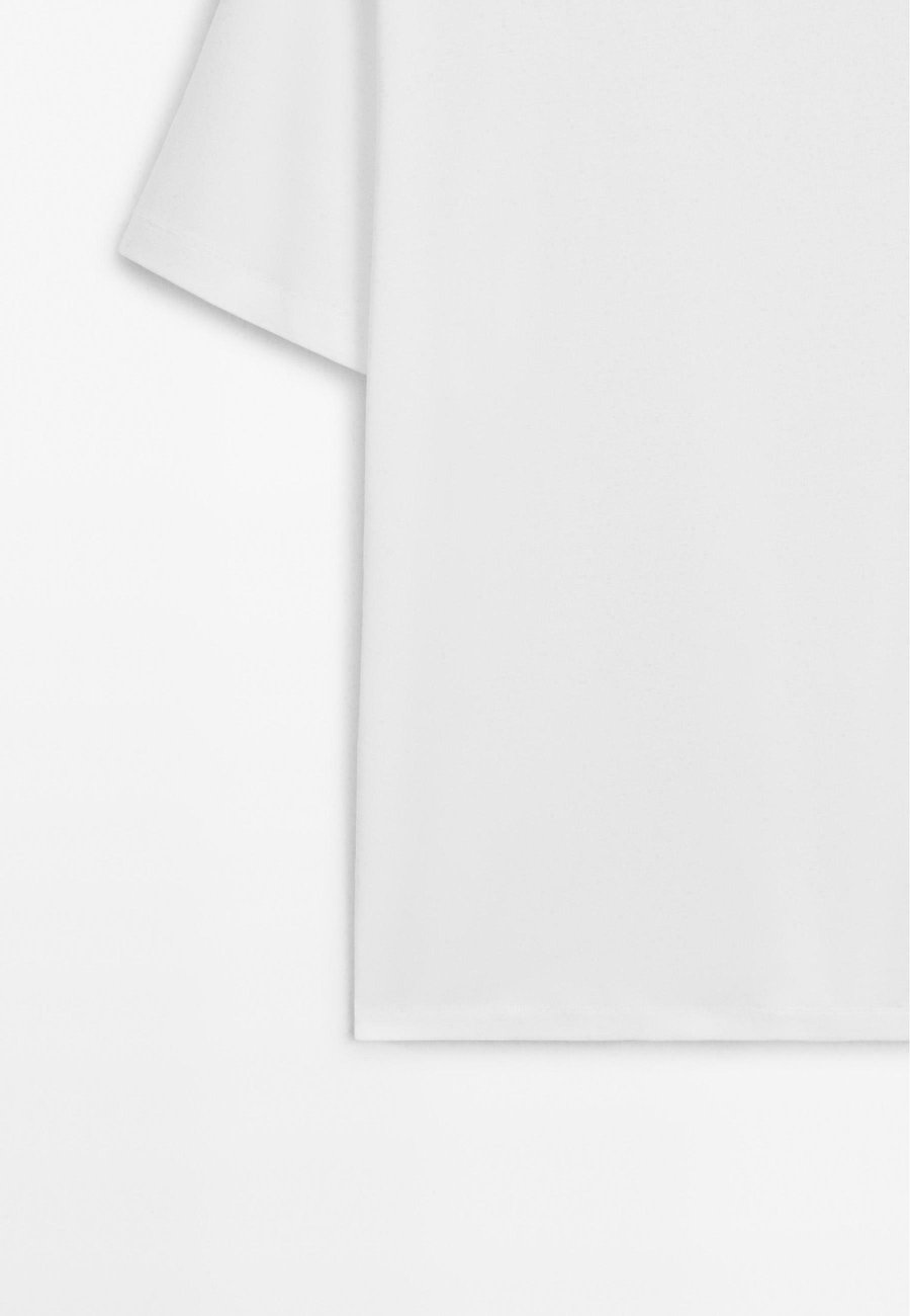 Широкий и свободный силуэт, не приталенный. Короткие рукава. Круглый вырез. Футболка из 100% мерсеризованного хлопка. Вырез: КруглыйМатериал и уход