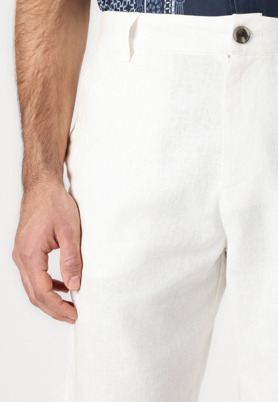 Льняные шорты с боковыми карманами спереди и накладными карманами сзади, изготовленные из хлопчатобумажной льняной ткани. Содержание льна обеспечивает ощущение легкости и прохлады весной и летом. Посадка: Нормальная