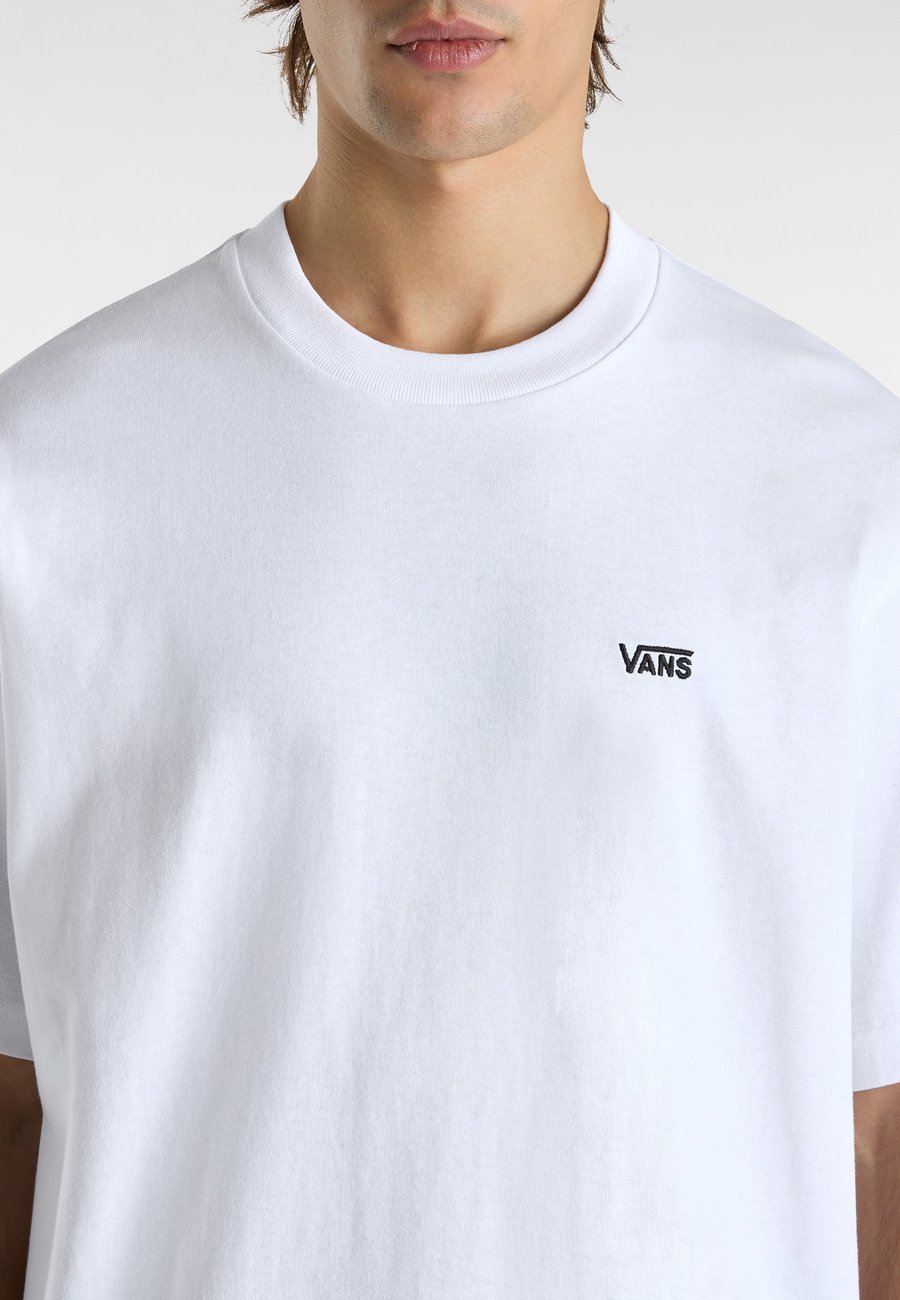 Футболка Left Chest II свободного кроя - Мужская футболка. Цвет и состав материала: - Чистый белый цвет с черным логотипом Vans на груди - 100% хлопок. Особенности посадки и комфорта: - Свободный, расслабленный силуэт для свободы движений - Классический круглый вырез с ребристым воротником - Спущенные плечи для непринужденного стиля - Средняя длина до бедра для универсального ношения - Высококачественный хлопок 20-го сорта для исключительной мягкости. Left Chest II воплощает фирменный непринужденный стиль Vans с базовым свободным кроем, созданным для повседневной носки. Эта простая футболка сочетает в себе классические элементы дизайна и высококачественный хлопковый материал, обеспечивая комфорт и желанную эстетику в стиле скейтбординга, которая сочетается буквально со всем в вашем гардеробе. Вырез горловины: КруглыйМатериал и уход