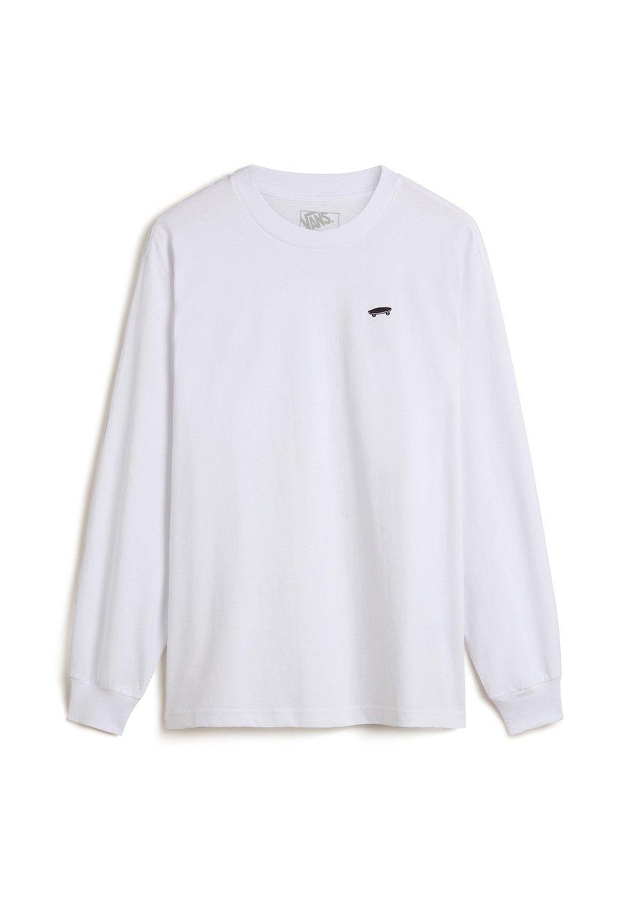 Футболка с длинным рукавом Salton свободного кроя - Мужская повседневная футболка. Цвет и состав материала: - Чистый овсяный/светло-серый цвет - Минималистичный дизайн с небольшим логотипом скейтборда - 100% хлопок. Особенности посадки и комфорта: - Свободный силуэт для свободы движений - Ребристый круглый вырез для классического стиля - Удлиненные рукава с ребристыми манжетами - Длина до бедра для универсального ношения - Высококачественный хлопок плотностью 20 г/м² для комфорта в любое время года. Футболка с длинным рукавом Salton свободного кроя воплощает приверженность Vans к непринужденному стилю и повседневному комфорту. Ее лаконичный дизайн и высококачественный хлопок создают идеальную основу для повседневных образов, а свободный крой и ненавязчивый брендинг сохраняют классическую эстетику, вдохновленную скейтбордингом. Эта незаменимая вещь обеспечит вам комфорт и стиль, не требуя особых усилий, будь то прогулка в парке или встреча с друзьями. Вырез горловины: круглыйМатериал и уход
