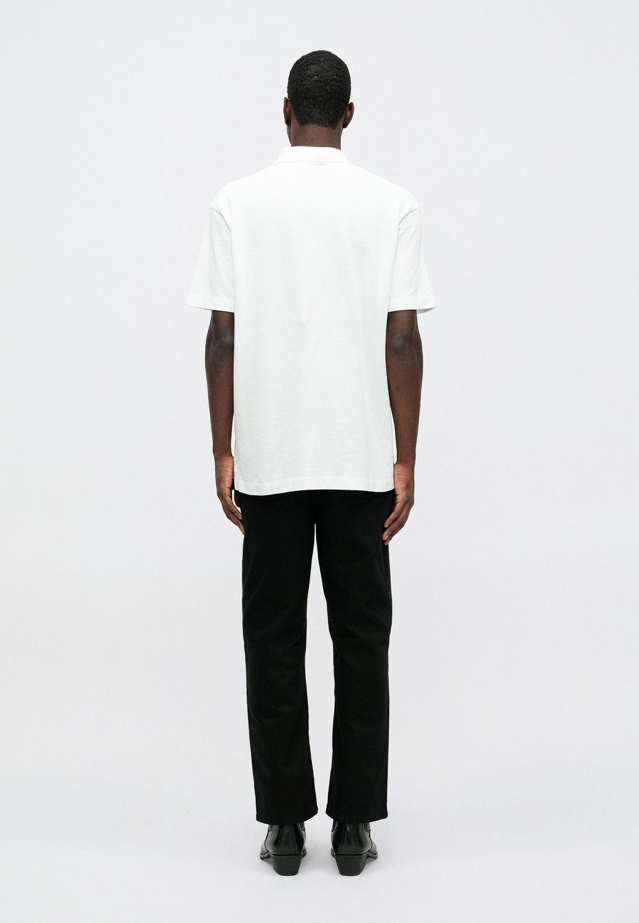 Небольшая этикетка на уровне груди. Воротник: рубашка поло.Материал и уход