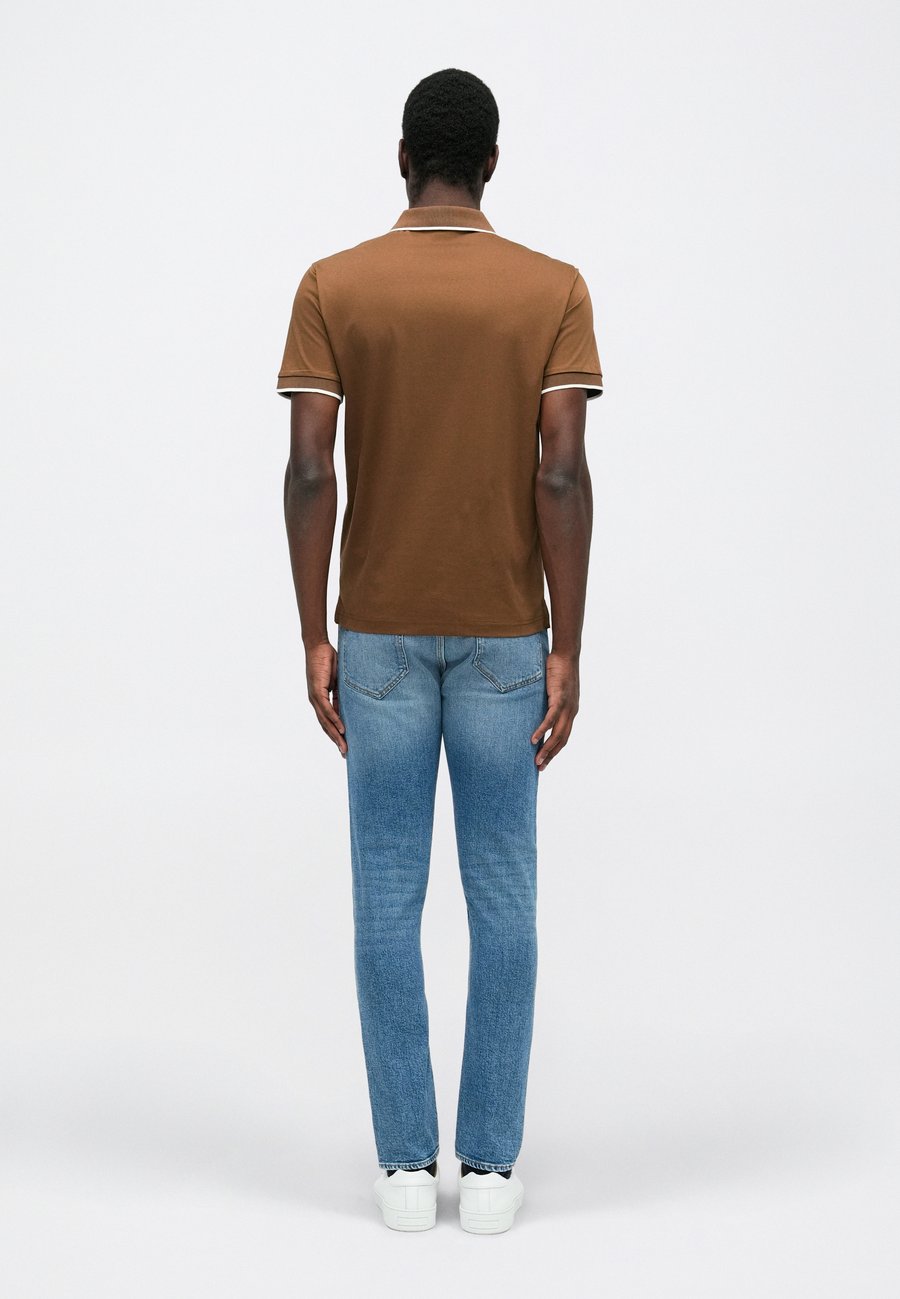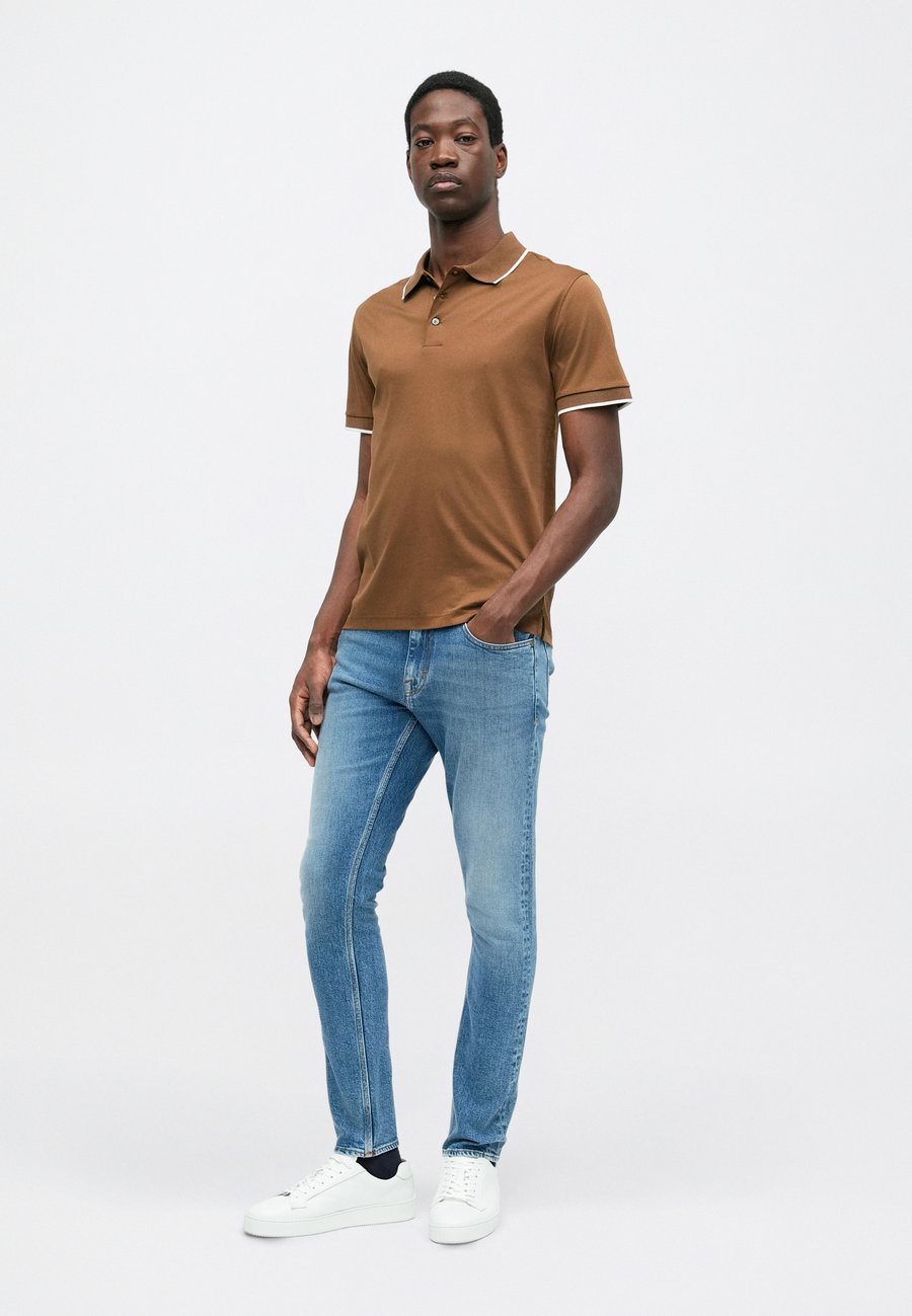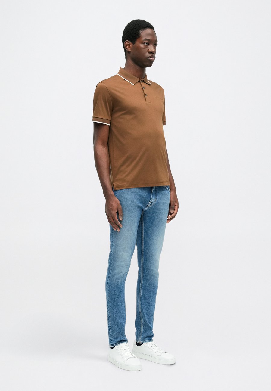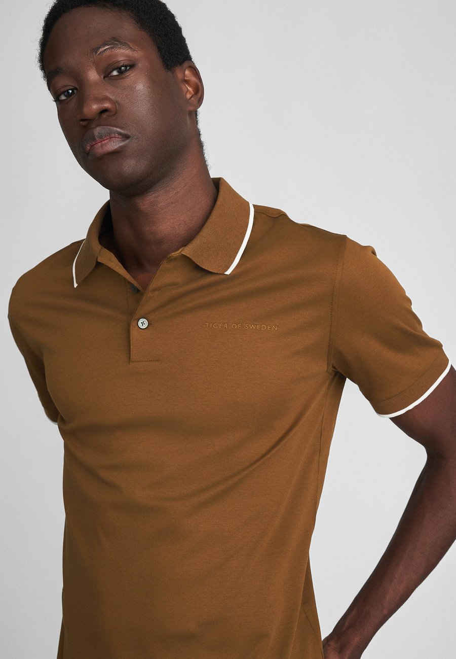 Небольшая этикетка на уровне груди. Воротник: рубашка поло.Материал и уход
