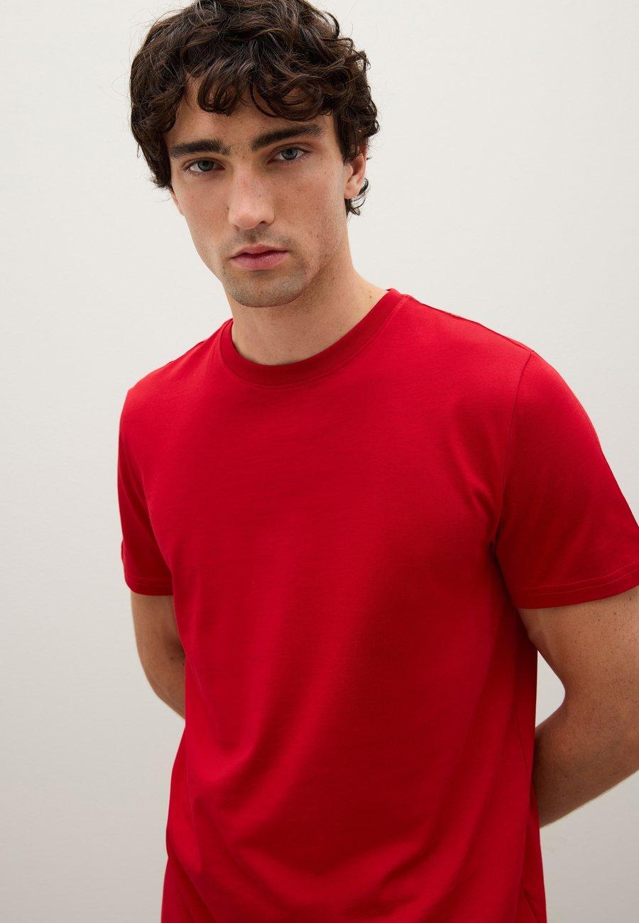 Красная футболка с круглым вырезом из коллекции PIOMBO - незаменимая вещь для тех, кто ценит простоту. Изготовленная из чистого хлопка, она идеально подходит для осеннего и зимнего сезонов. Идеально подходит для создания различных образов благодаря своей универсальности, ее можно сочетать с разными нарядами, обеспечивая комфорт и стиль в любом случае. Вырез горловины: КруглыйМатериал и уход