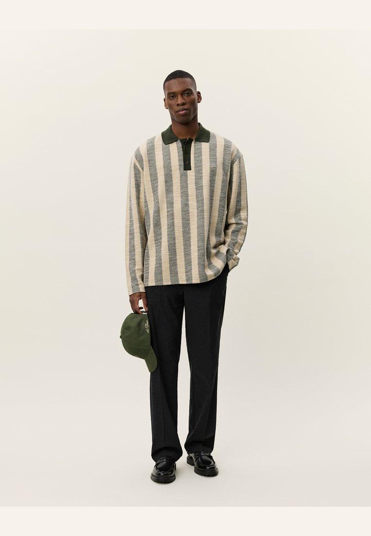 Небольшая этикетка на уровне груди. Воротник: рубашка поло.Материал и уход