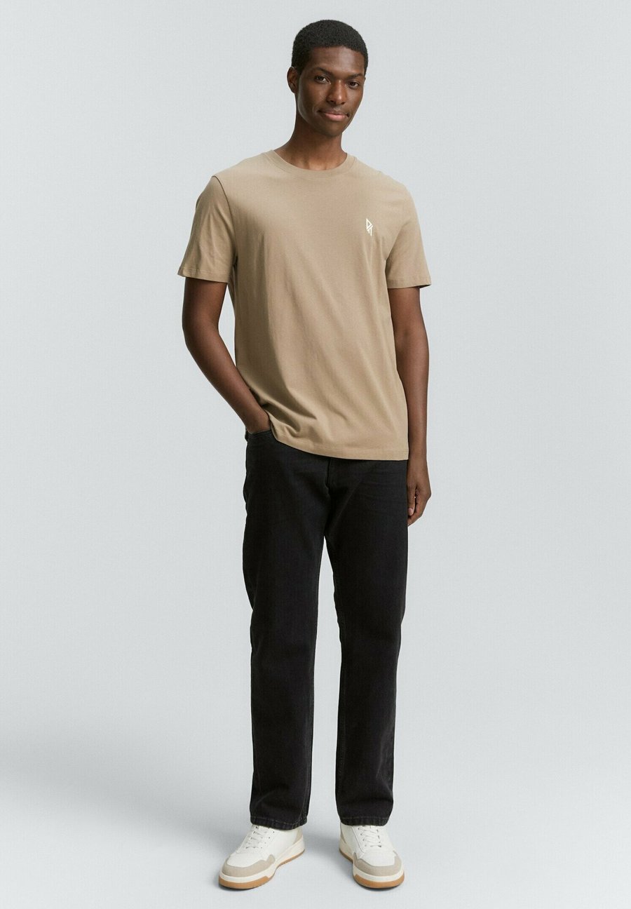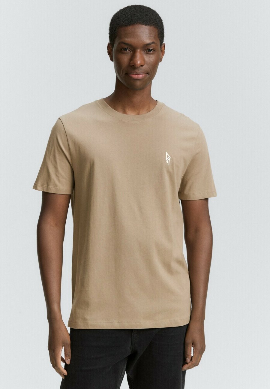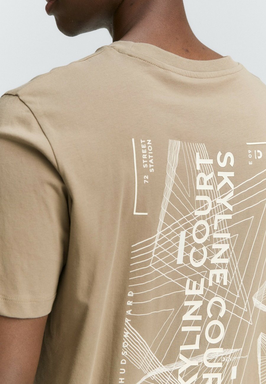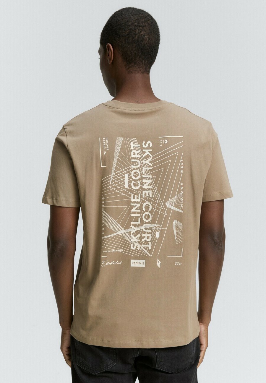 Современная футболка с большим принтом на спине и маленьким принтом на груди. Вырез: КруглыйМатериал и уход