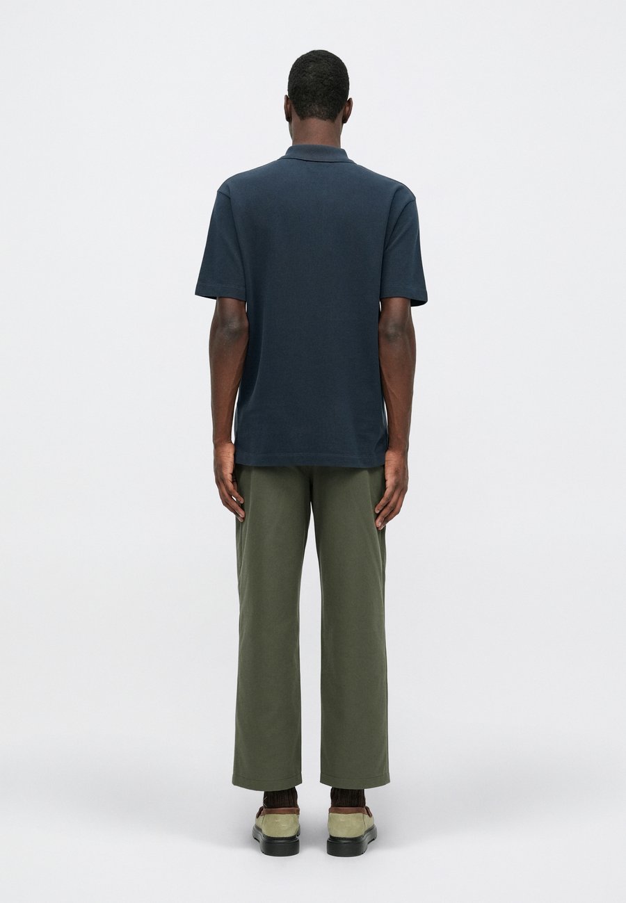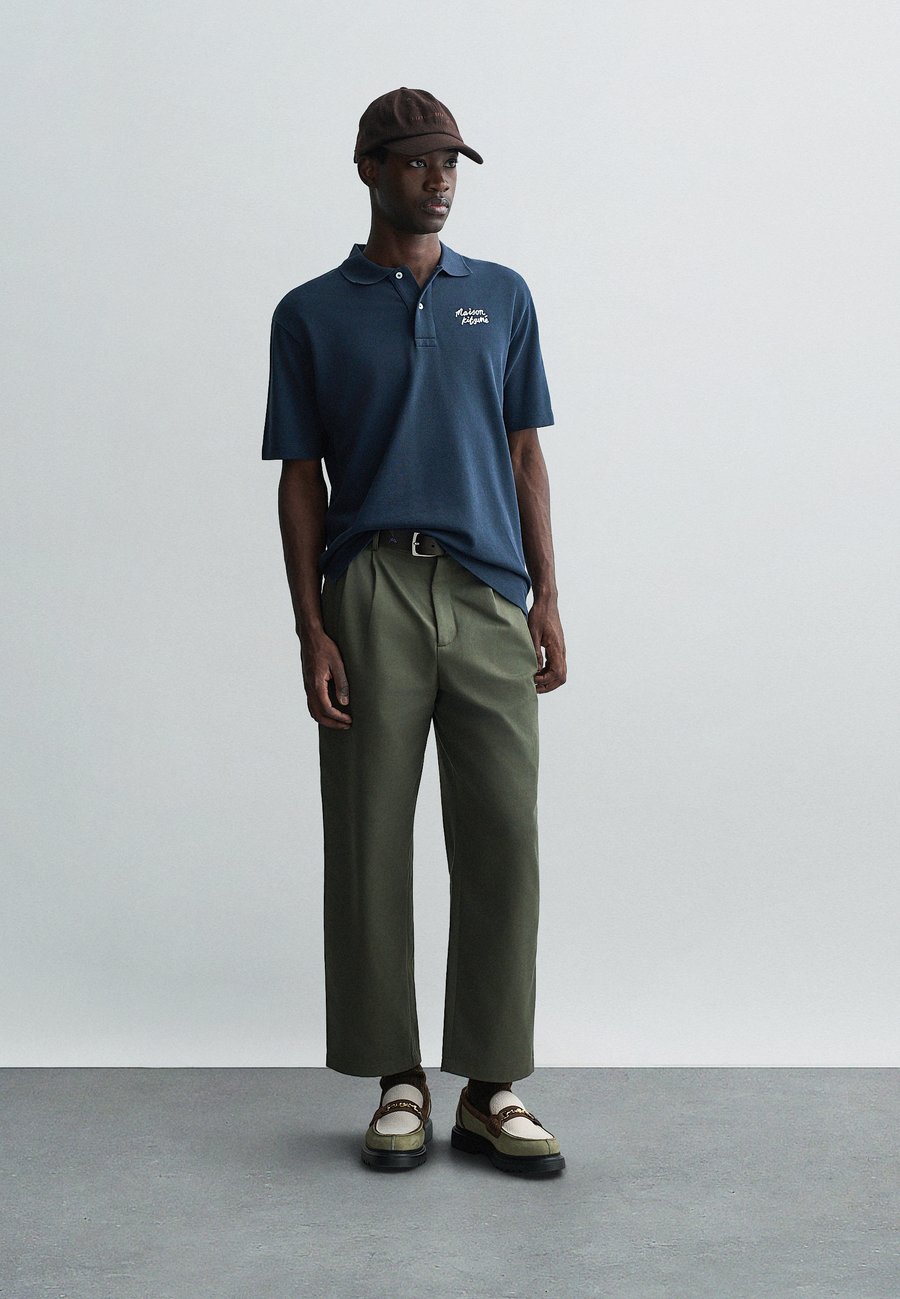 Небольшая этикетка на уровне груди. Воротник: рубашка поло.Материал и уход
