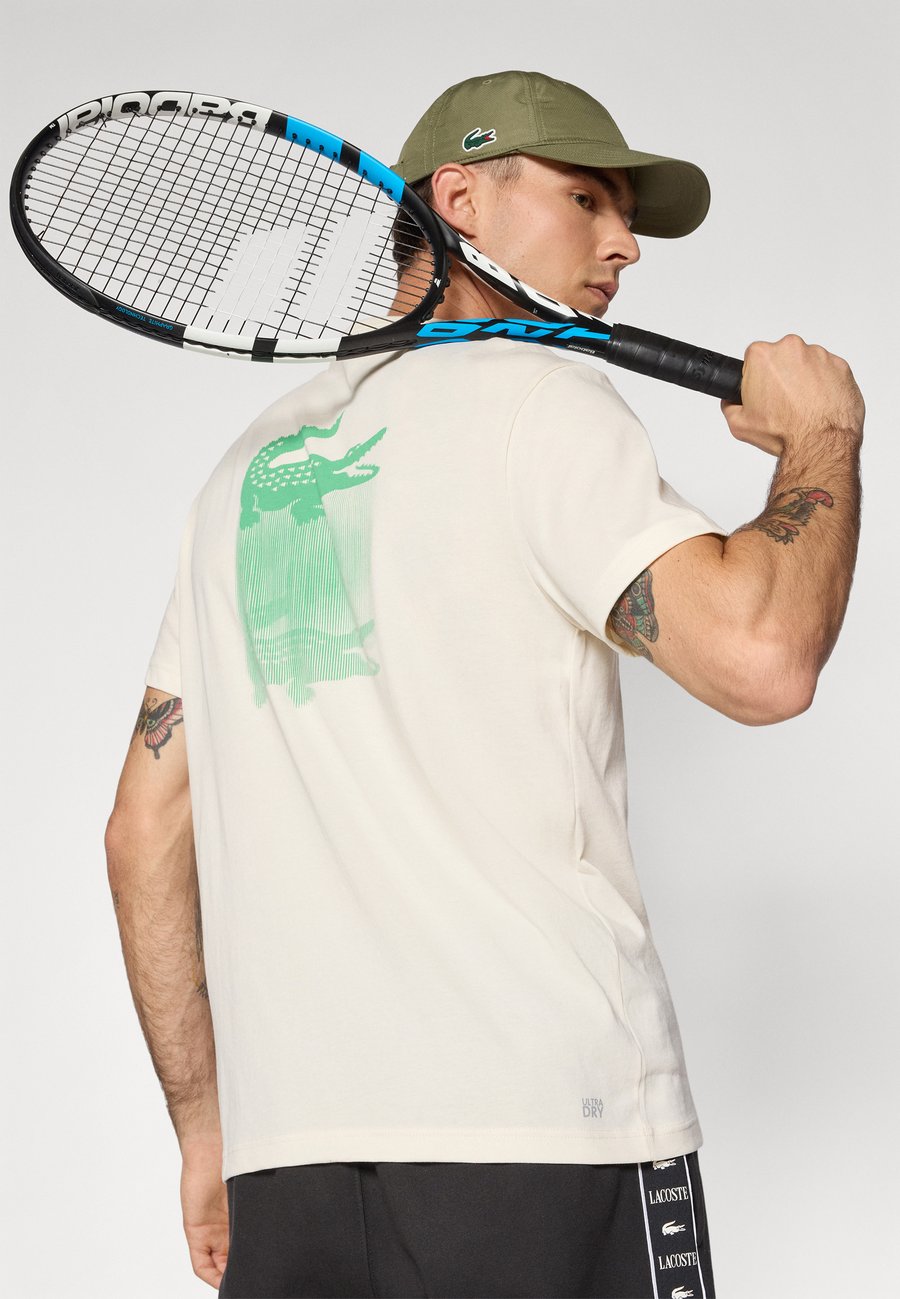 Удобная ультрасухая трикотажная футболка с ярким принтом под крокодила, идеально подходит для занятий спортом и обеспечивает ощущение свежести во время игры. Вырез горловины: круглыйМатериал и уход