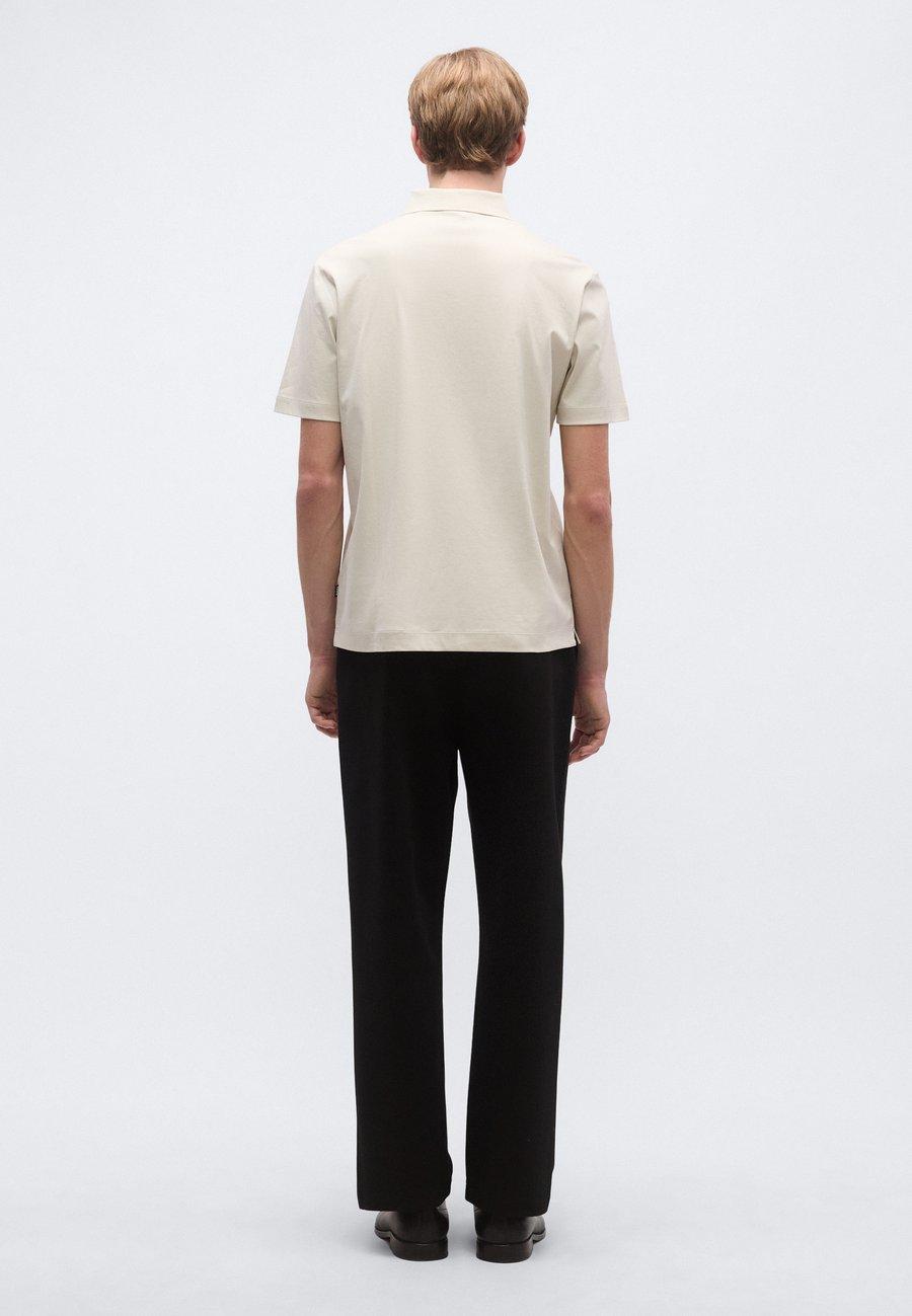 Небольшая этикетка-флажок на уровне груди, кожаные детали. Воротник: рубашка поло.Материал и уход