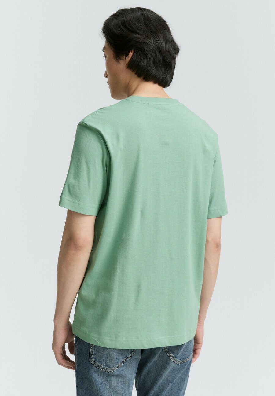 Футболка с современным логотипом на груди. Изготовлена из однослойного трикотажа из хлопка. Вырез горловины: круглый.Материал и уход