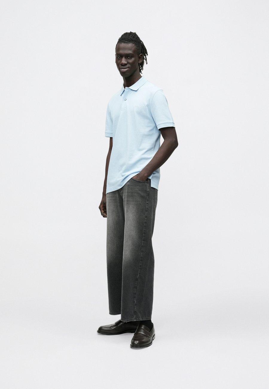 Небольшая этикетка-флажок на уровне груди. Воротник: рубашка поло.Материал и уход