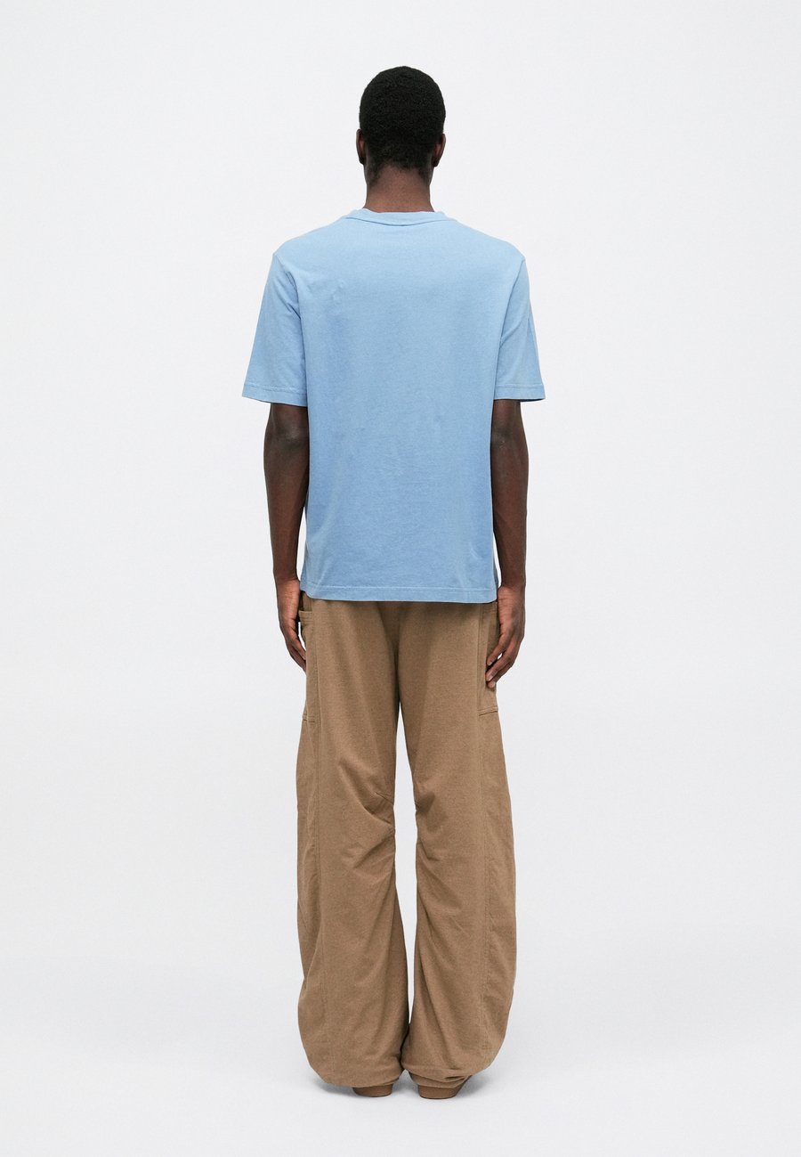 Небольшая этикетка-флажок на уровне груди. Вырез горловины: круглый.Материал и уход