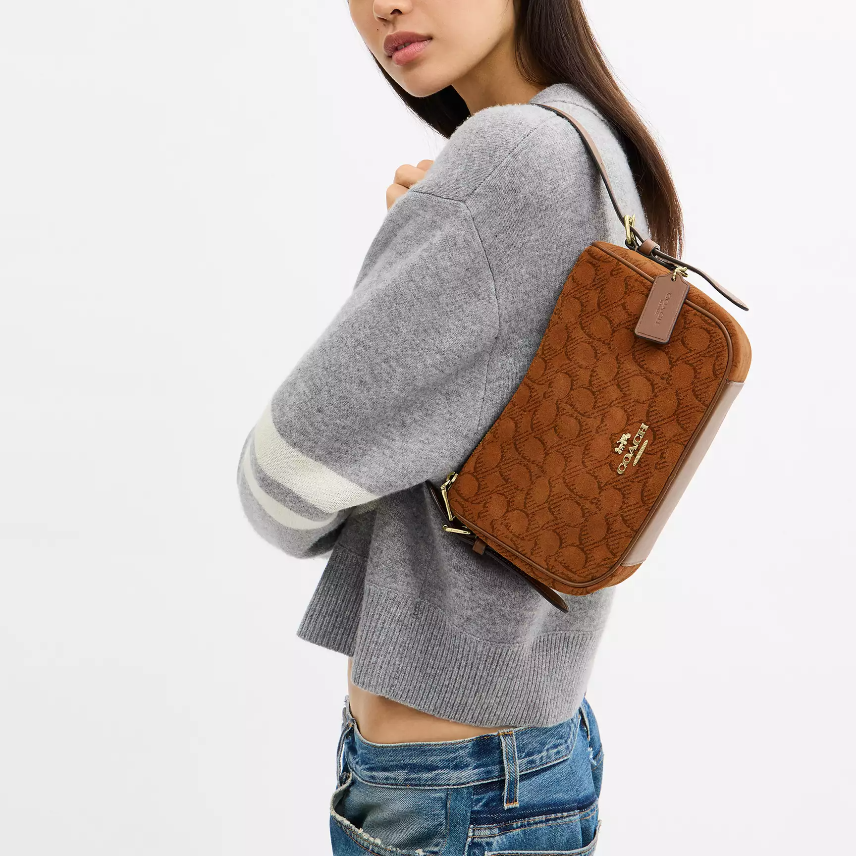 Kailey Iconic Suede With Smooth Leather Shoulder Bag Small Women's Suede Caramel COACH, basic set (bag+dust bag)